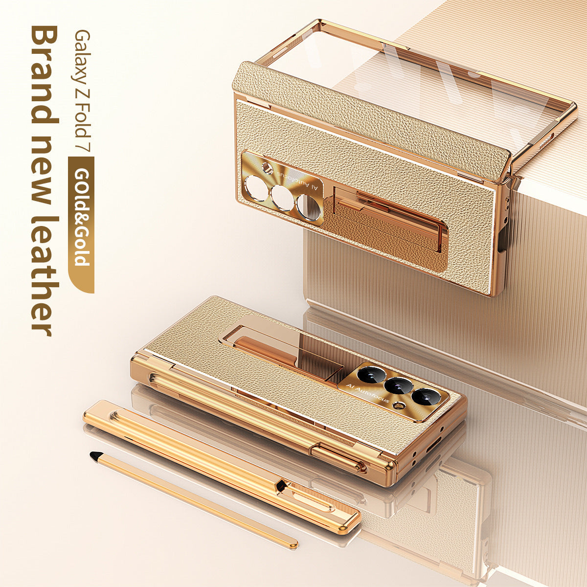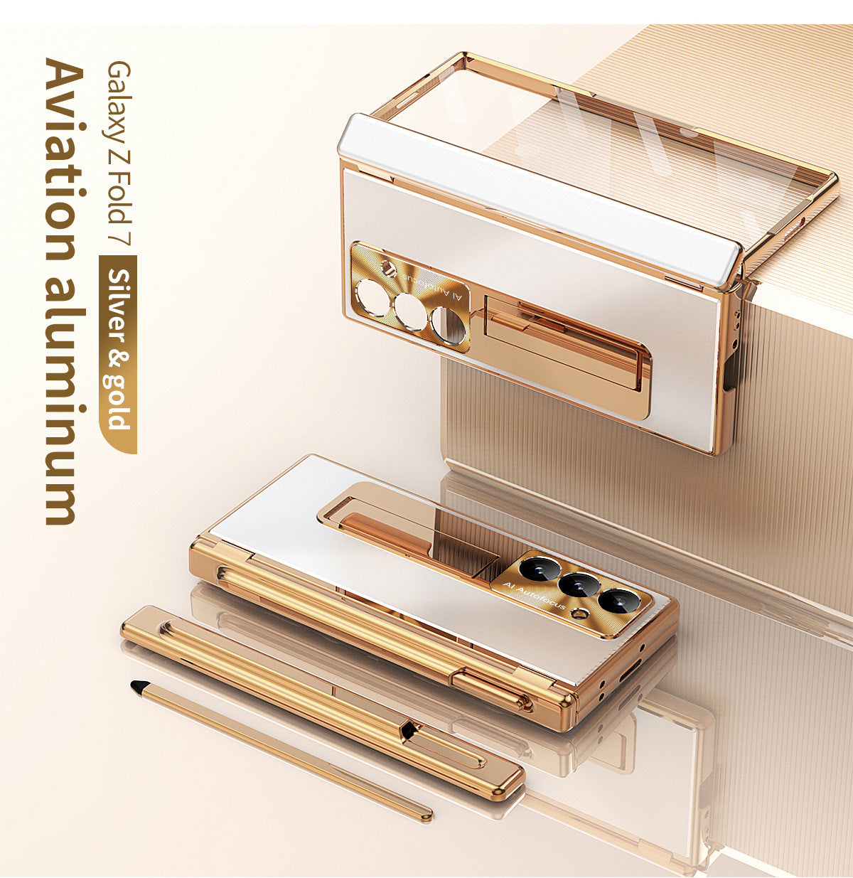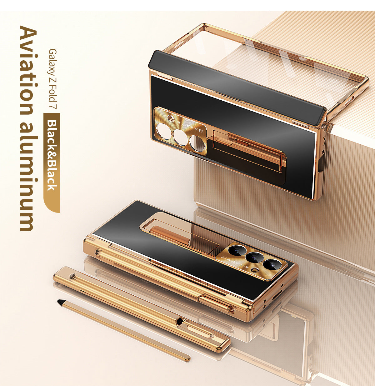 Aluminum Alloy Frame Magnetic Bracket All-Inclusive Electroplating Leather Cover For Galaxy Z Fold 7/6/5/4/3