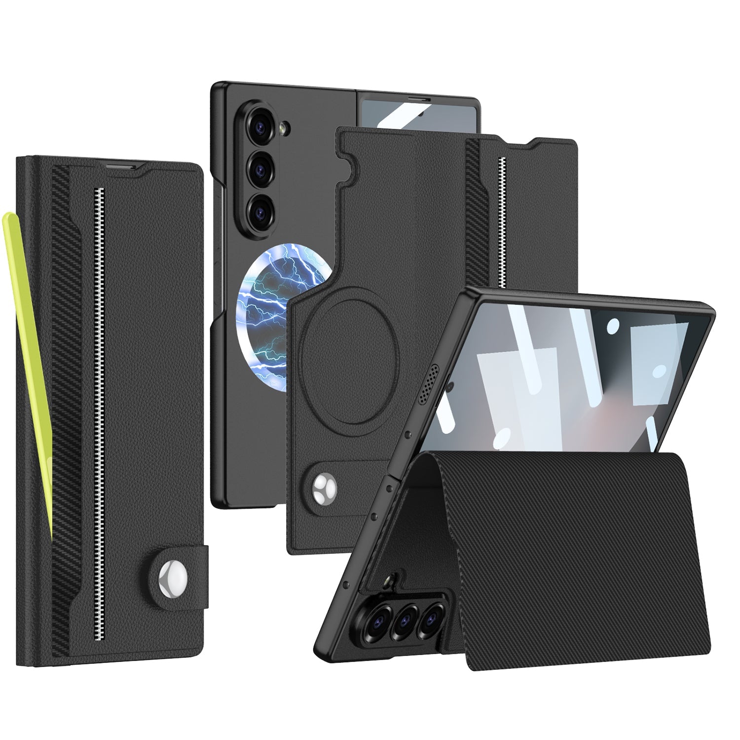Magnetic Flip Leather Cover Card Holder Anti-Fall Shockproof Phone Case For Galaxy Z Fold6 Fold5
