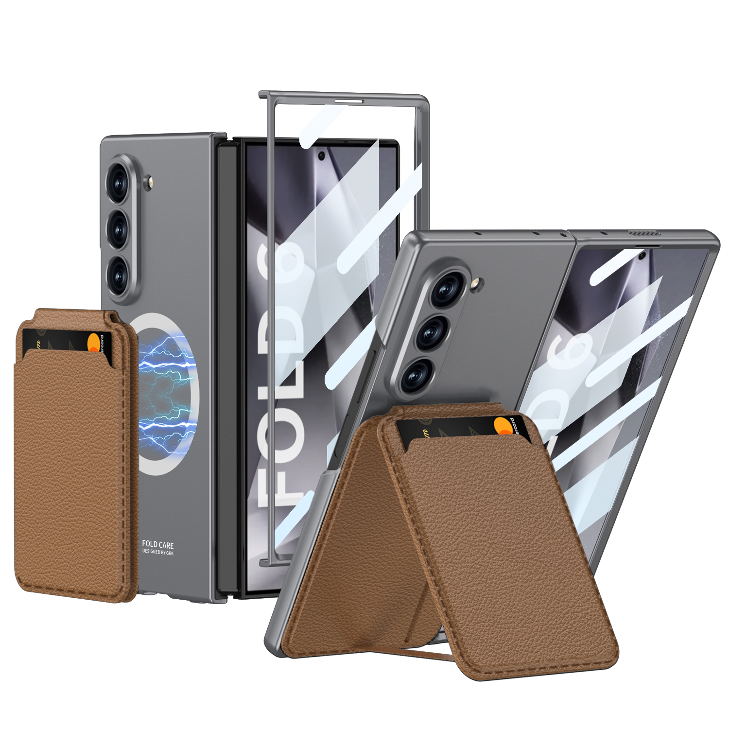 Magnetic Leather Card Holder Shockproof Phone Case With Screen Glass Protector For Galaxy Z Fold 6/5/4/3