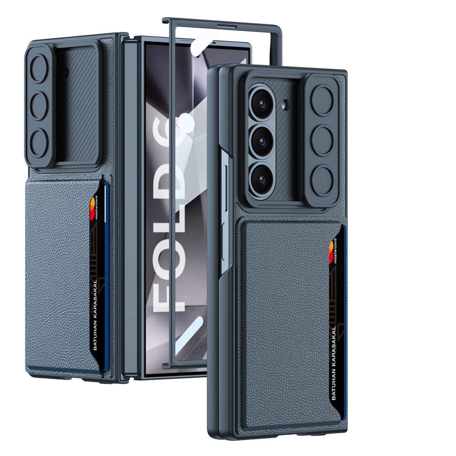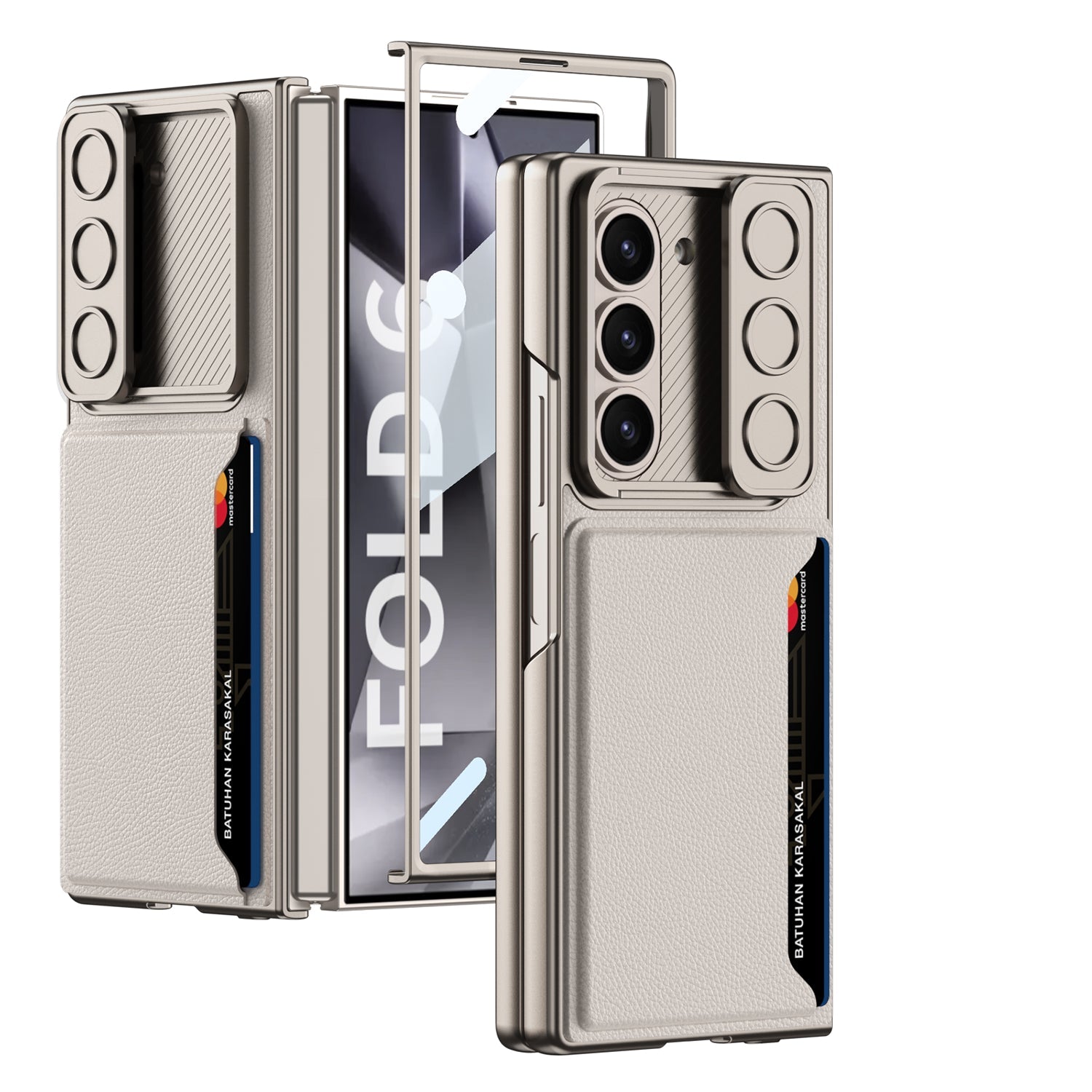 Leather Card Holder Lens Slide Protector Shockproof Phone Case With Screen Protector For Galaxy Z Fold 6