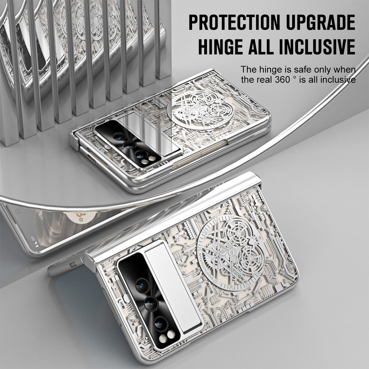 Electroplating Google Pixel Fold Case All Inclusive Double Pen Tray Hinge with Screen Protector and Free stylus
