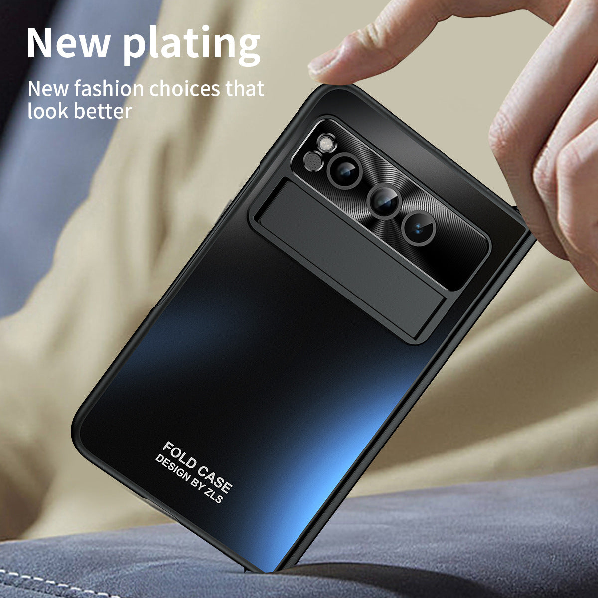 Frosted Plating Google Pixel Fold Case with Hinge Protector Screen Protector and Hidden Kickstand