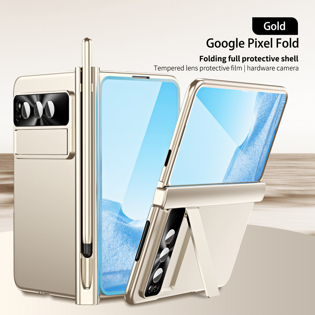 Google Pixel Fold Shell All-inclusive Protection Case With Double Pen Slot Hinge and Front Screen Protector