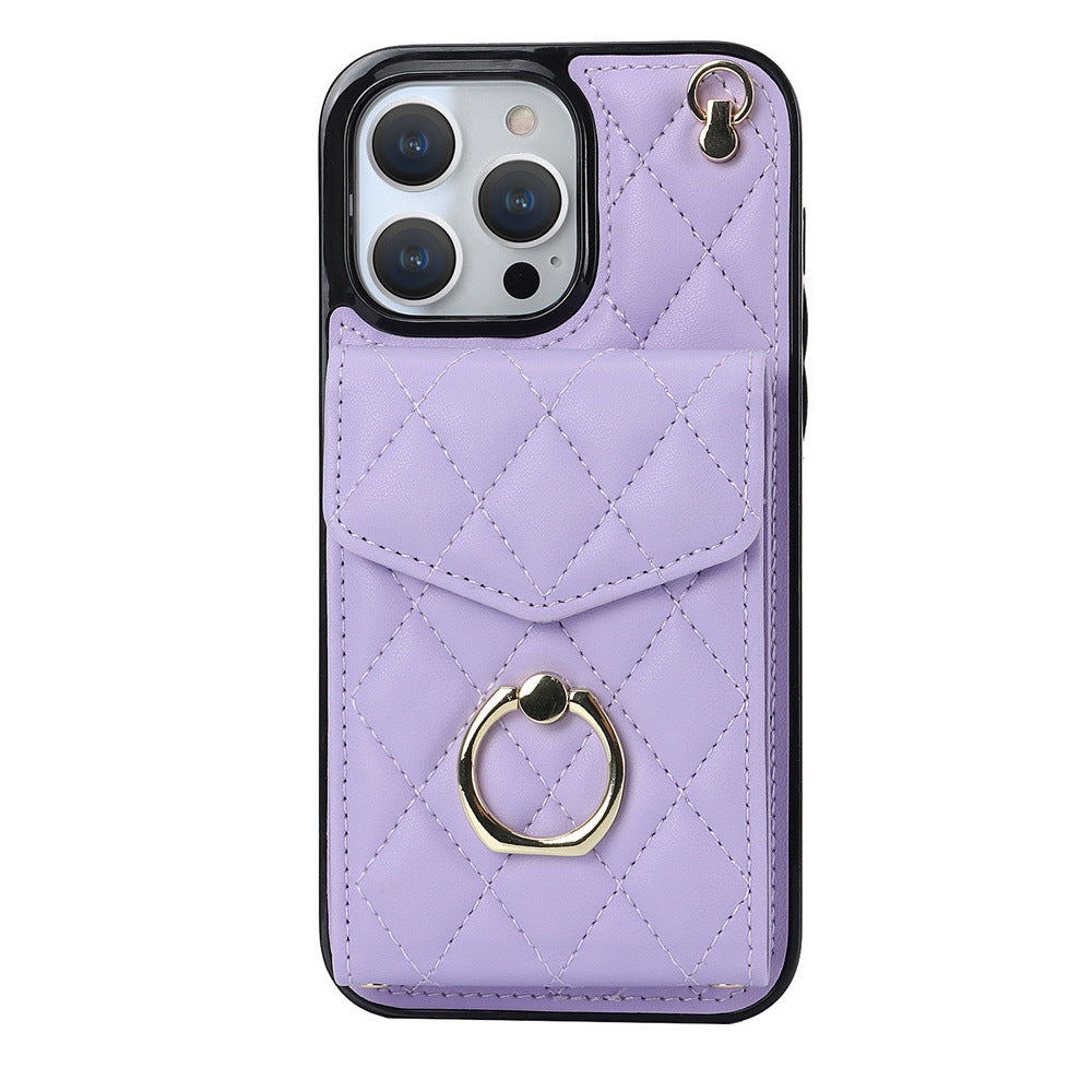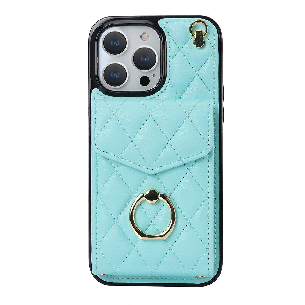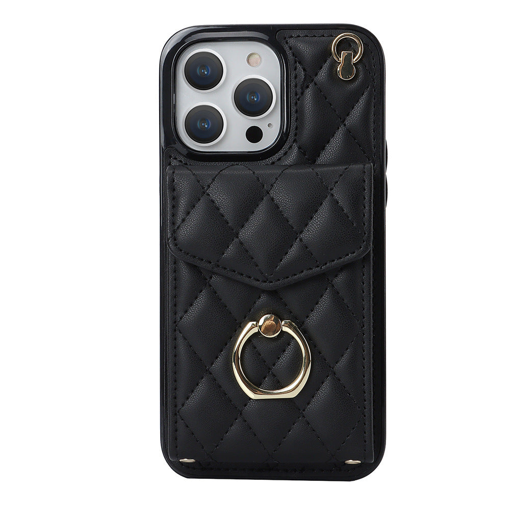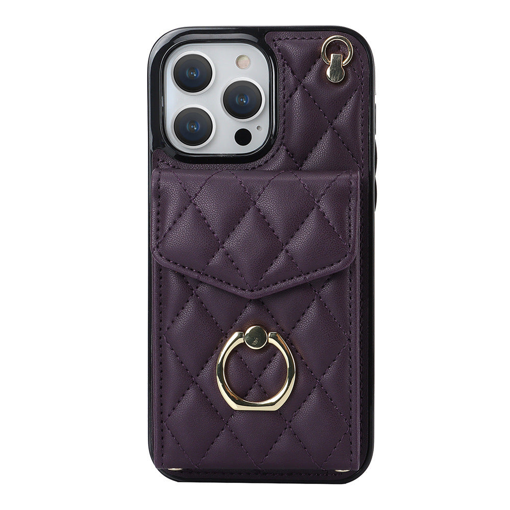 Luxurious Leather Card Holder Anti-fall Protective iPhone Case With Lanyard