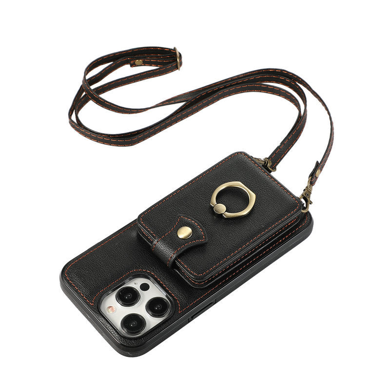 Luxurious Leather Card Holder Anti-fall Protective iPhone Case With Lanyard
