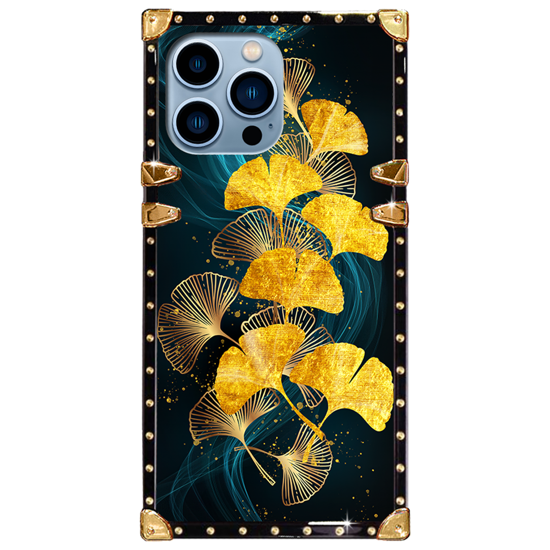 Luxury Brand Ginkgo Biloba Gold Square Case For iPhone
