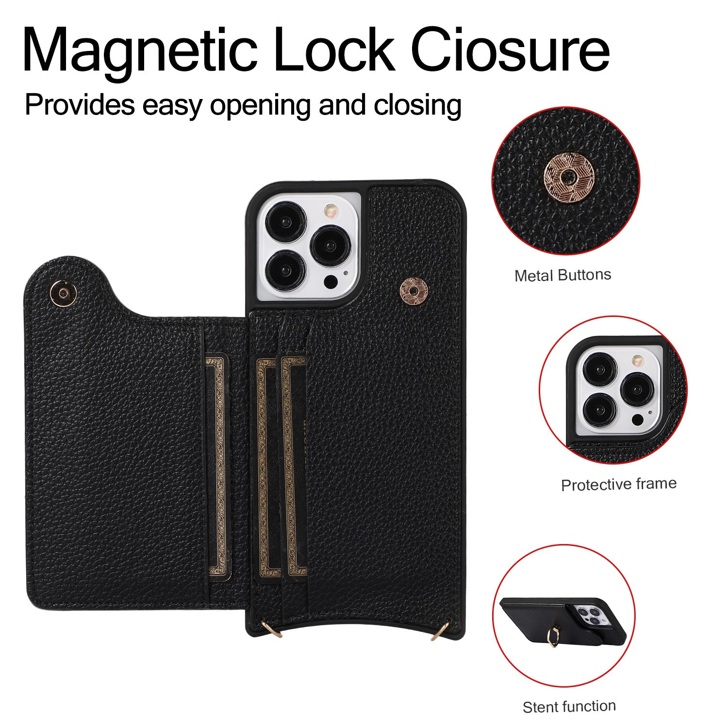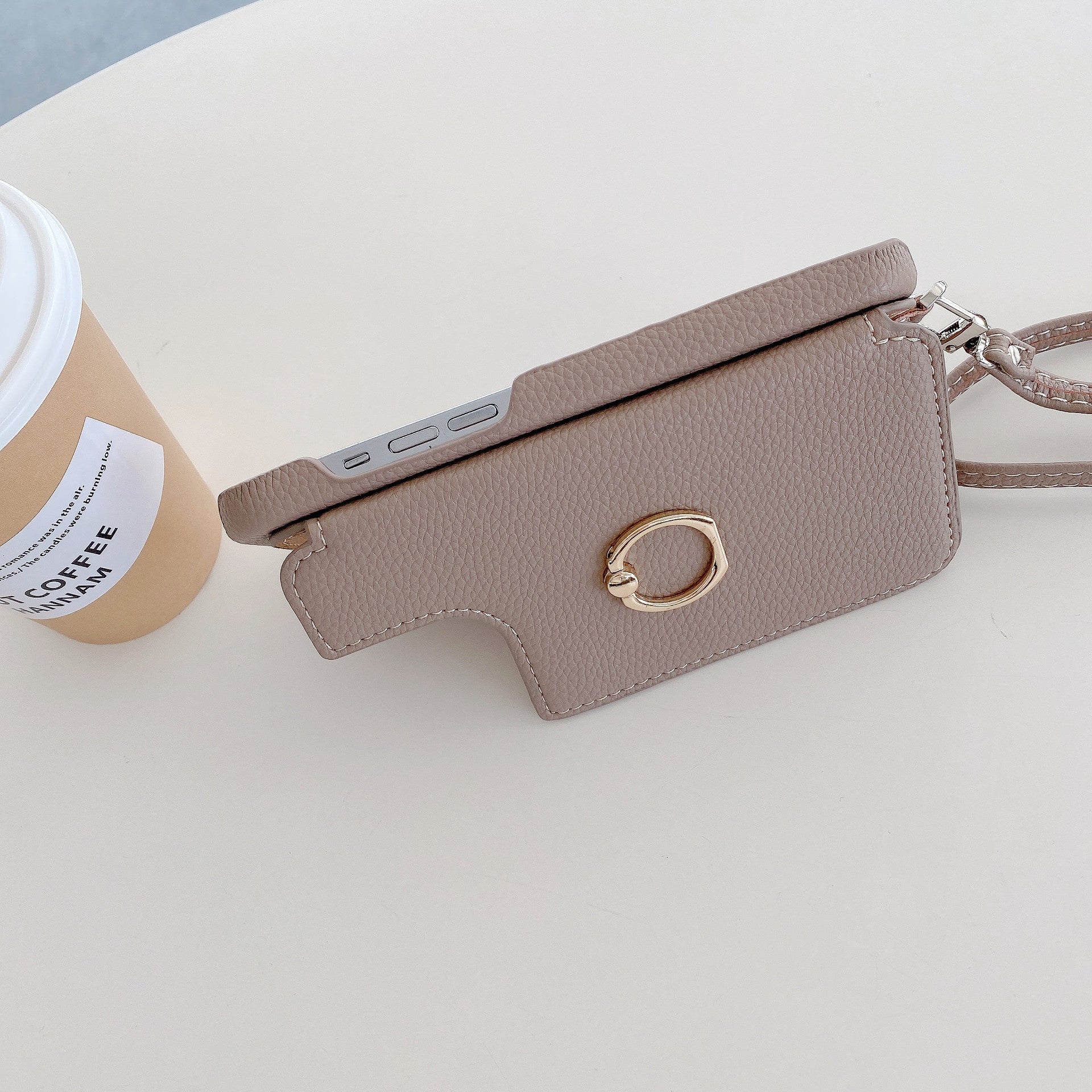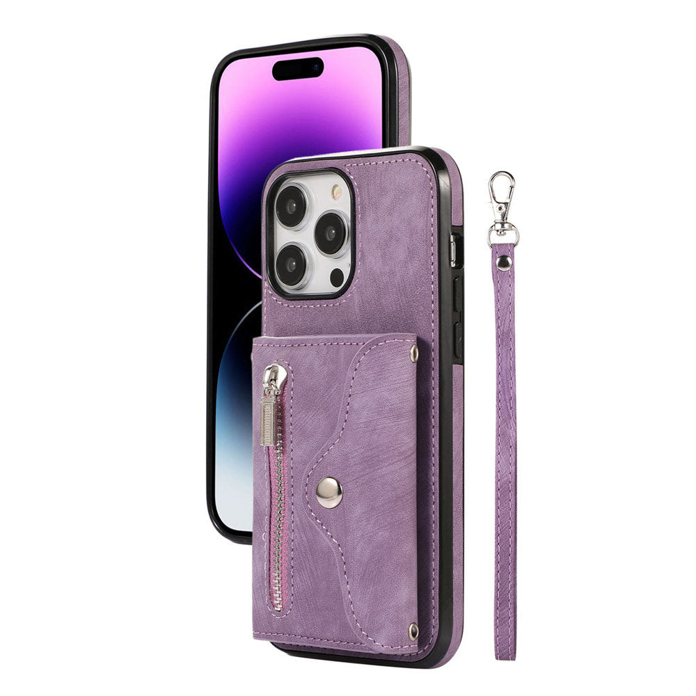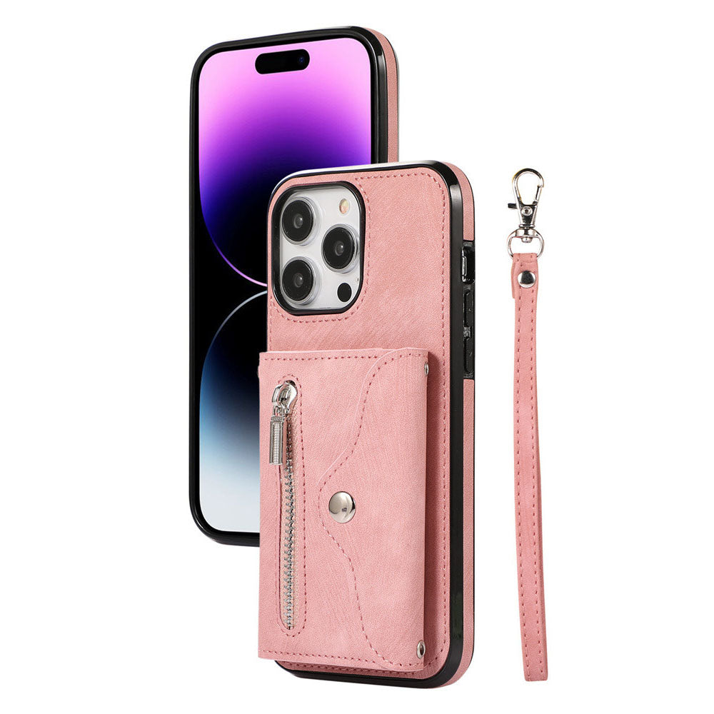 Luxurious Leather Card Holder Anti-fall Protective iPhone Case With Wrist Strap