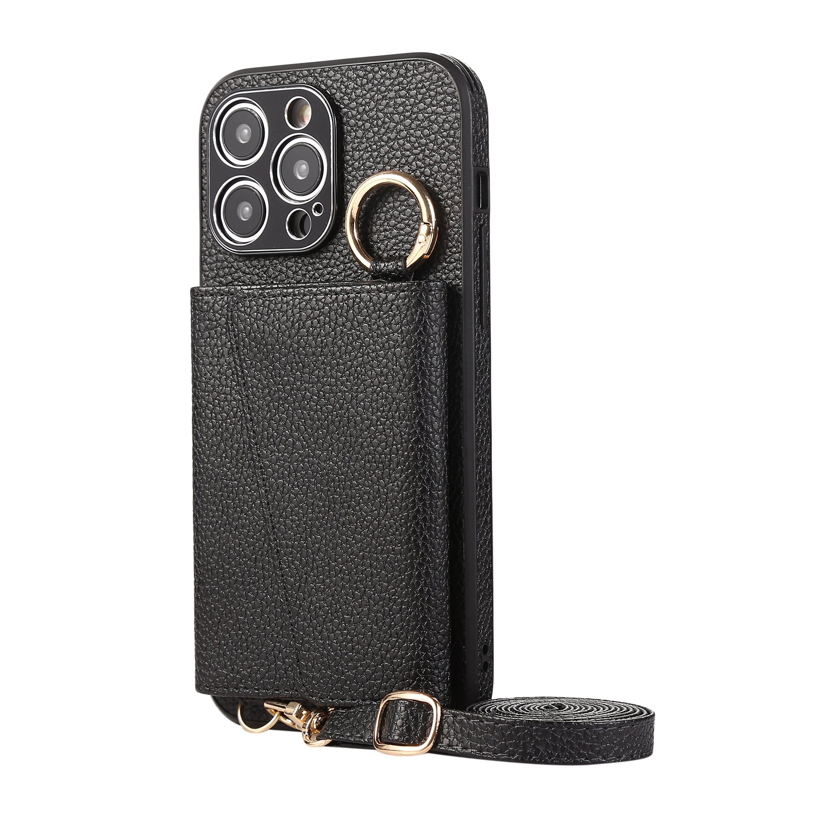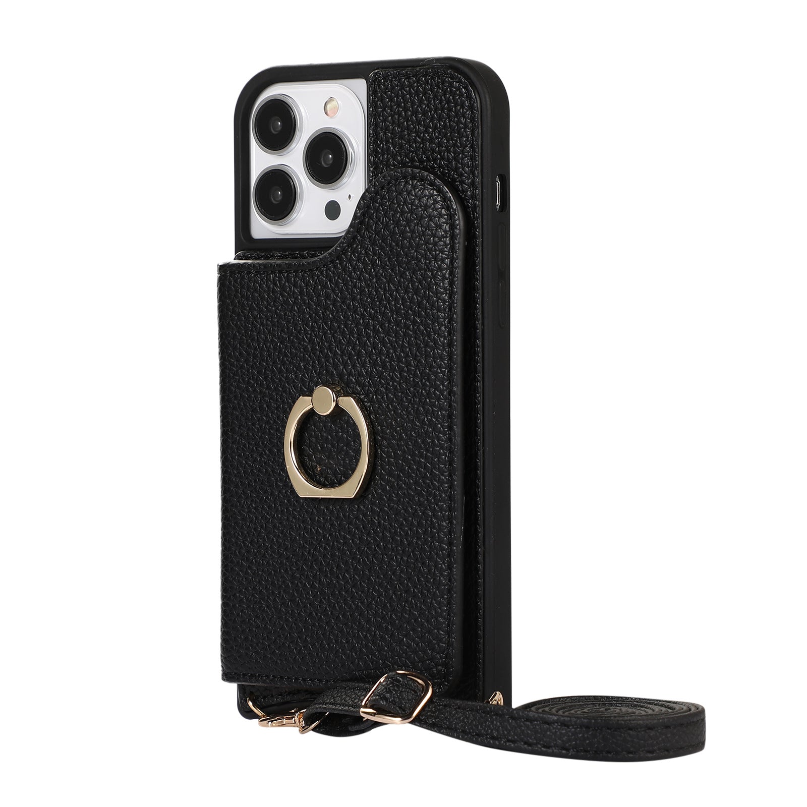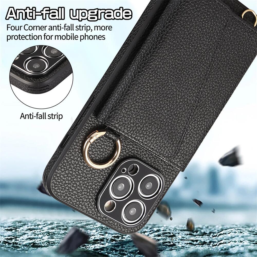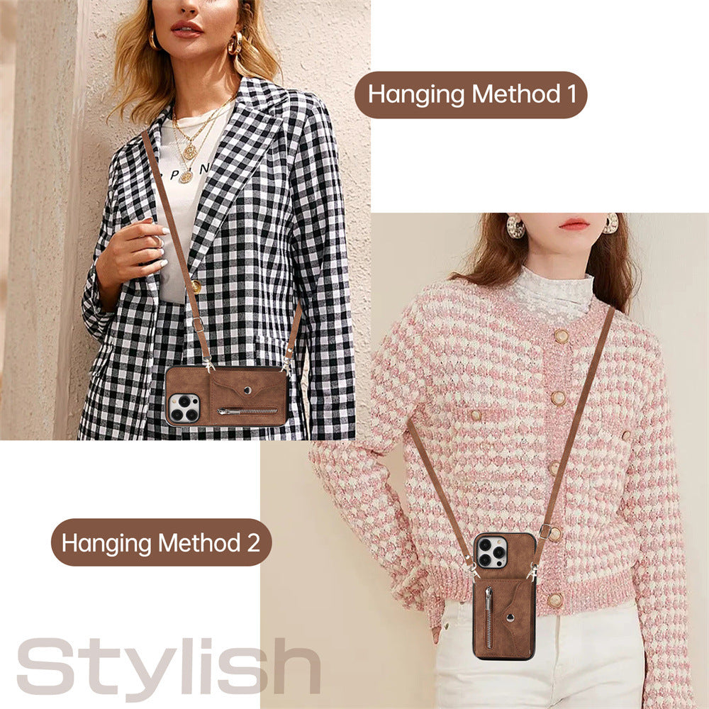 Luxurious Leather Card Holder Anti-fall Protective iPhone Case With Lanyard
