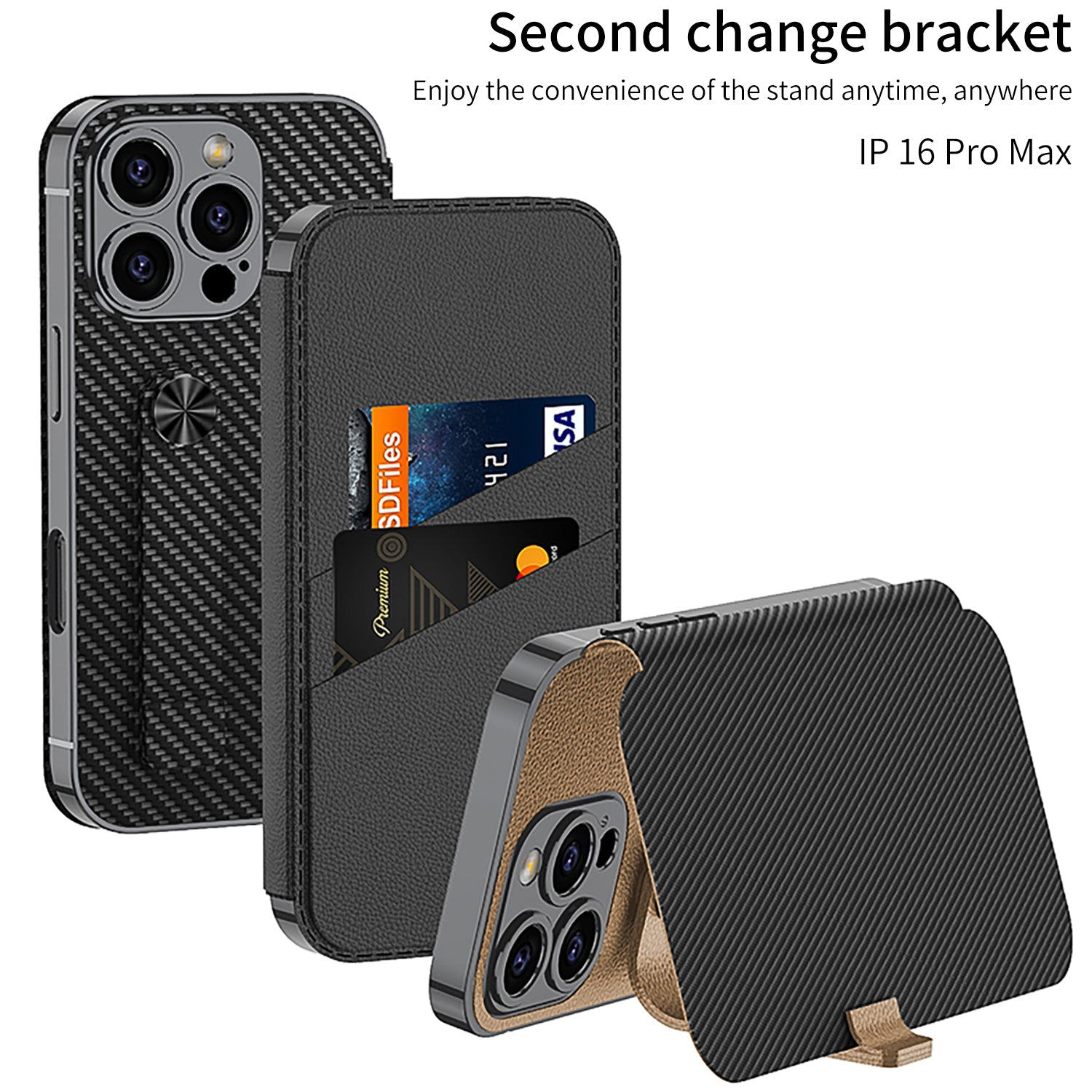 Magnetic Metal Bracket Leather Shockproof iPhone Case With Card Holder