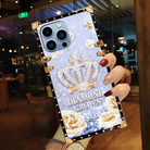 Luxury Brand Diamond Crown Gold Square Case For iPhone