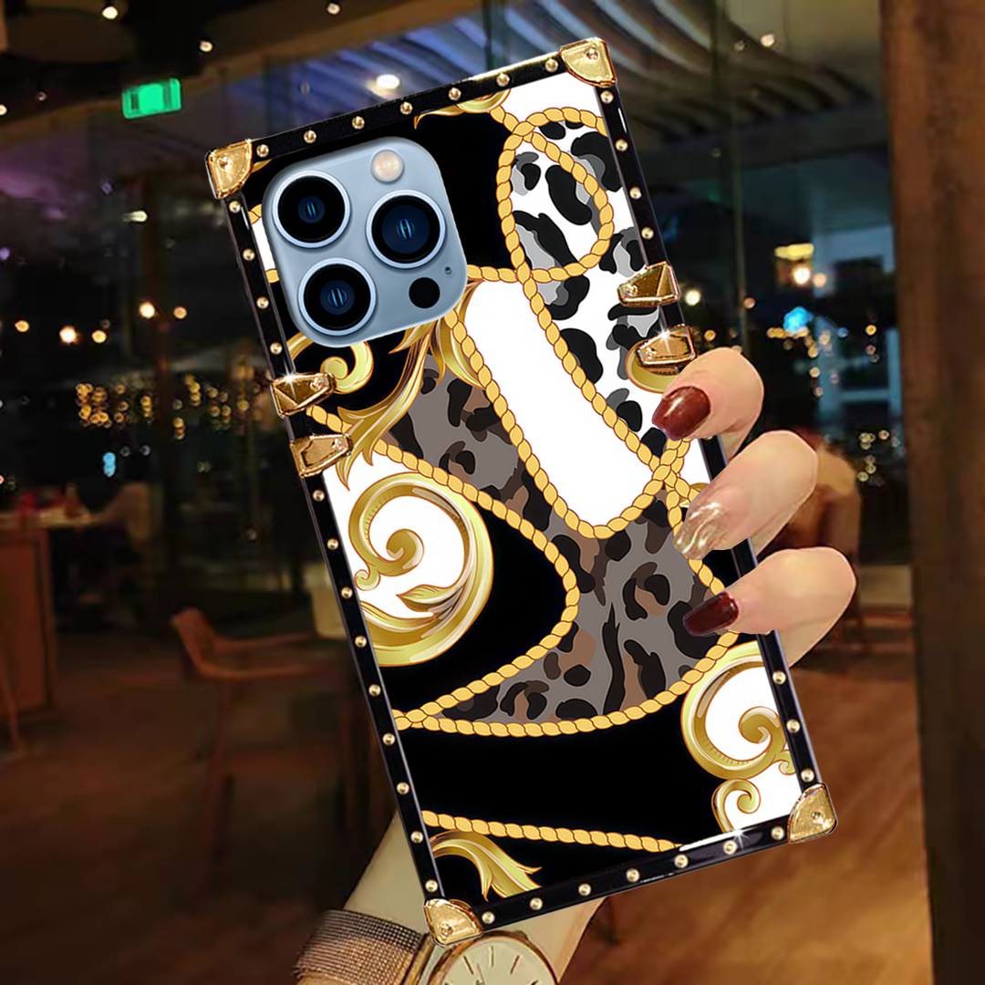 Luxury Brand Golden Baroque Gold Square Case For iPhone