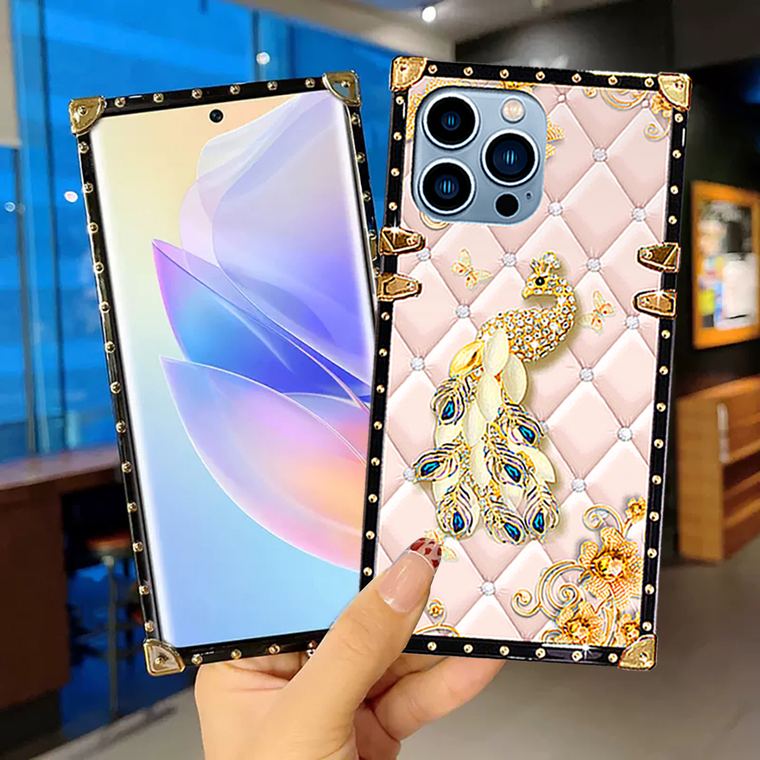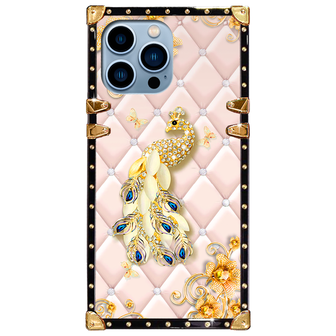 Luxury Brand Golden Peacock Gold Square Case For iPhone