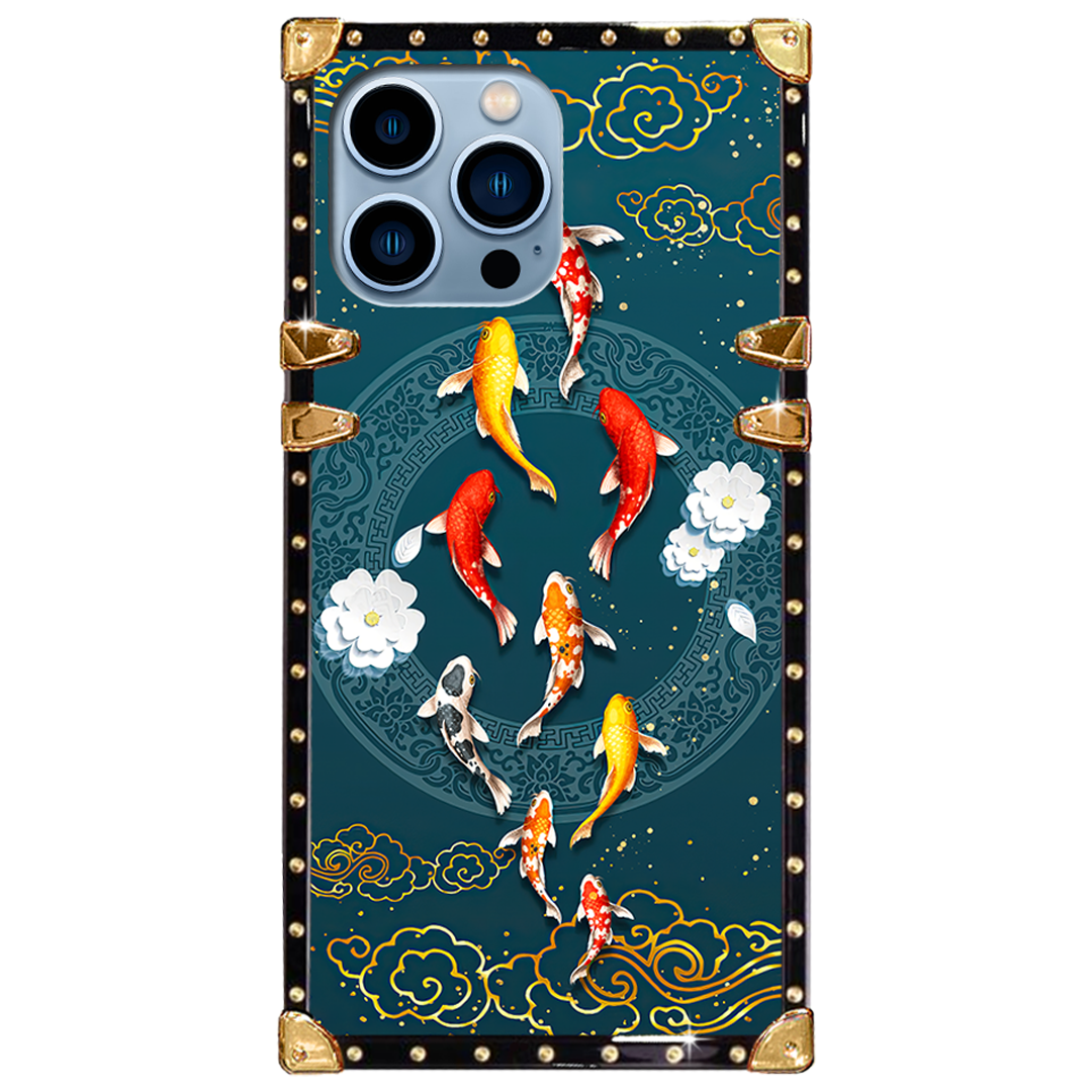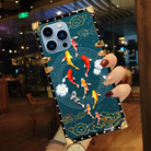 Luxury Brand Goldfish Pattern Gold Square Case For iPhone