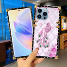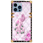 Luxury Brand Pink Peacock Gold Square Case For iPhone