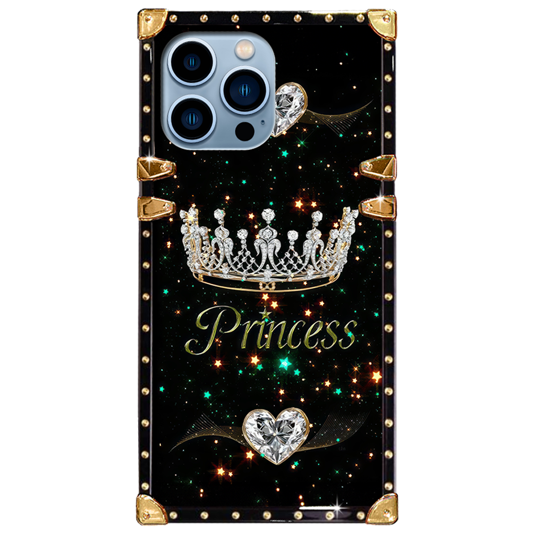 Luxury Brand Princess Crown Gold Square Case For iPhone