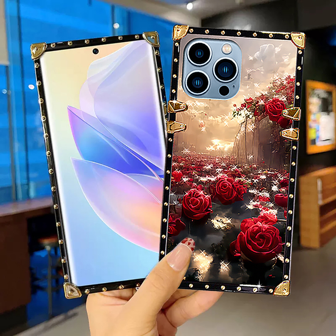 Luxury Brand Sunset Rose Garden Gold Square Case For iPhone