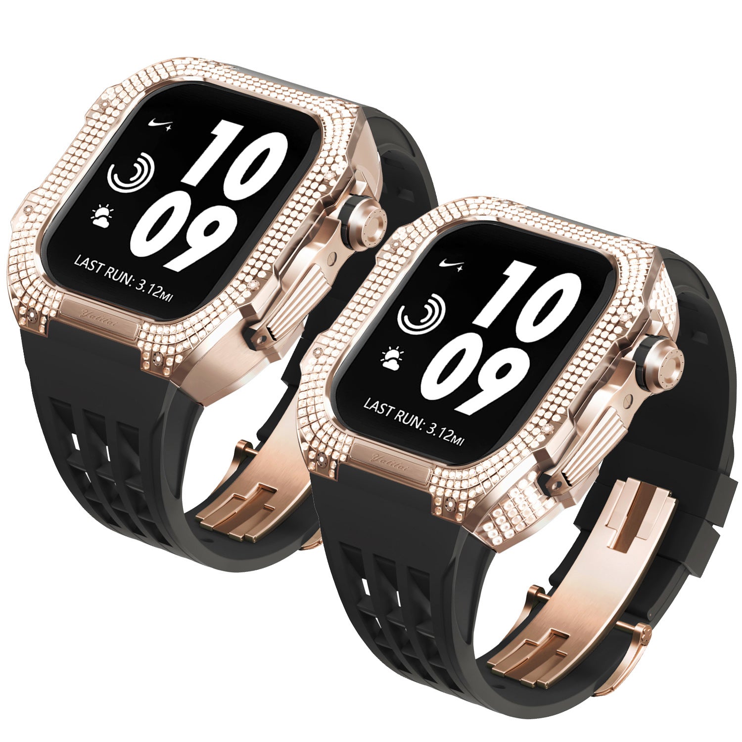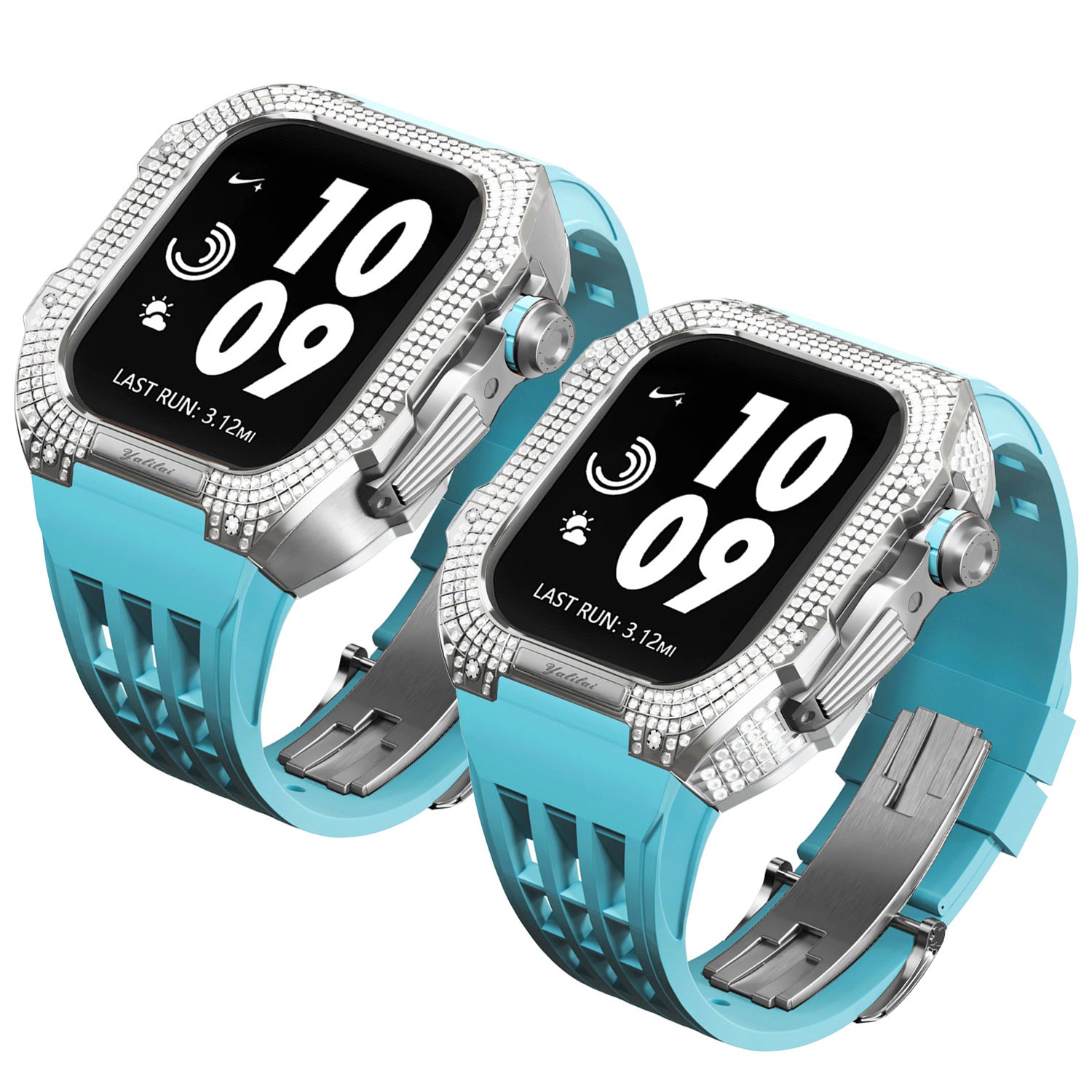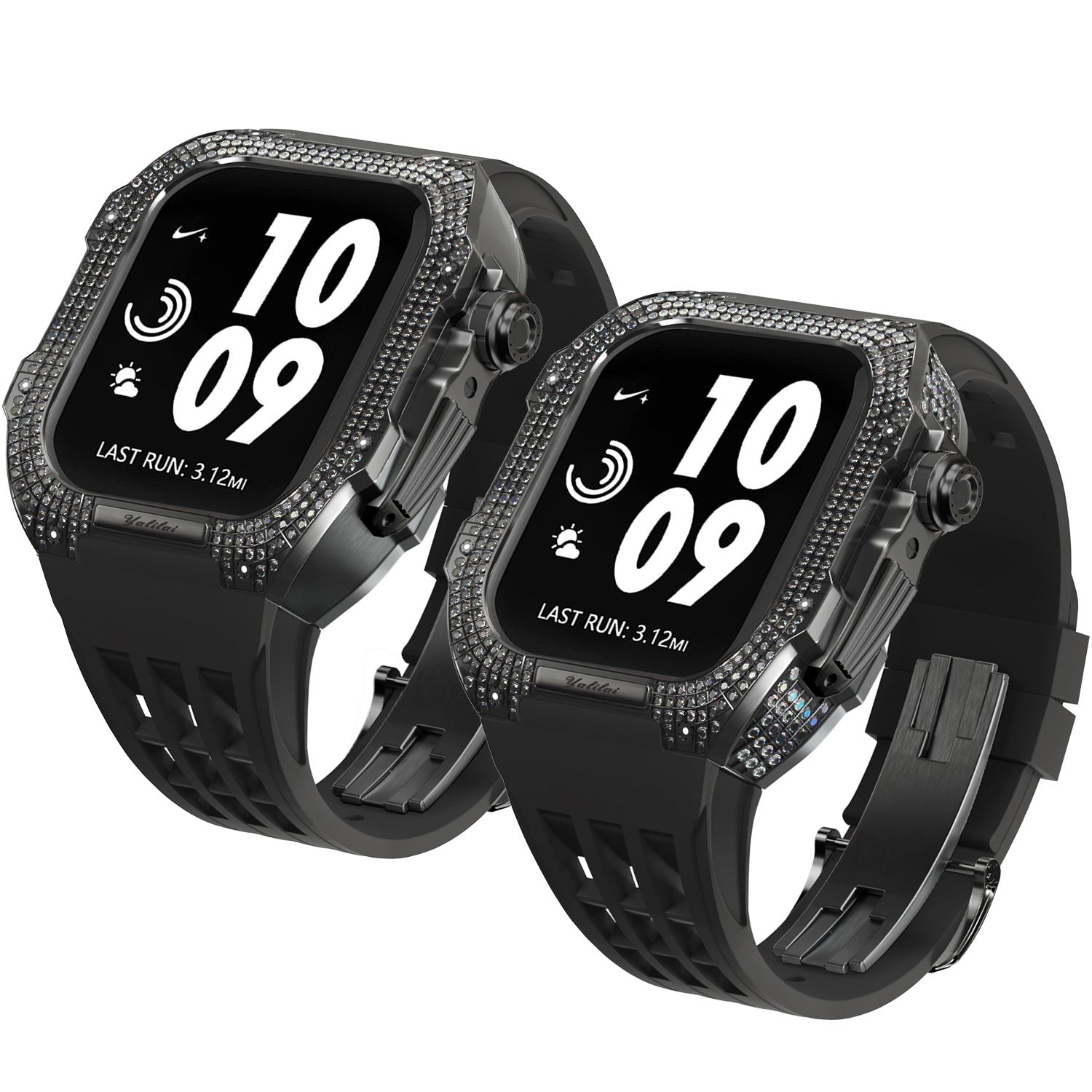 Luxurious Titanium Alloy Crystal Case Strap For Apple Watch 44/45 mm