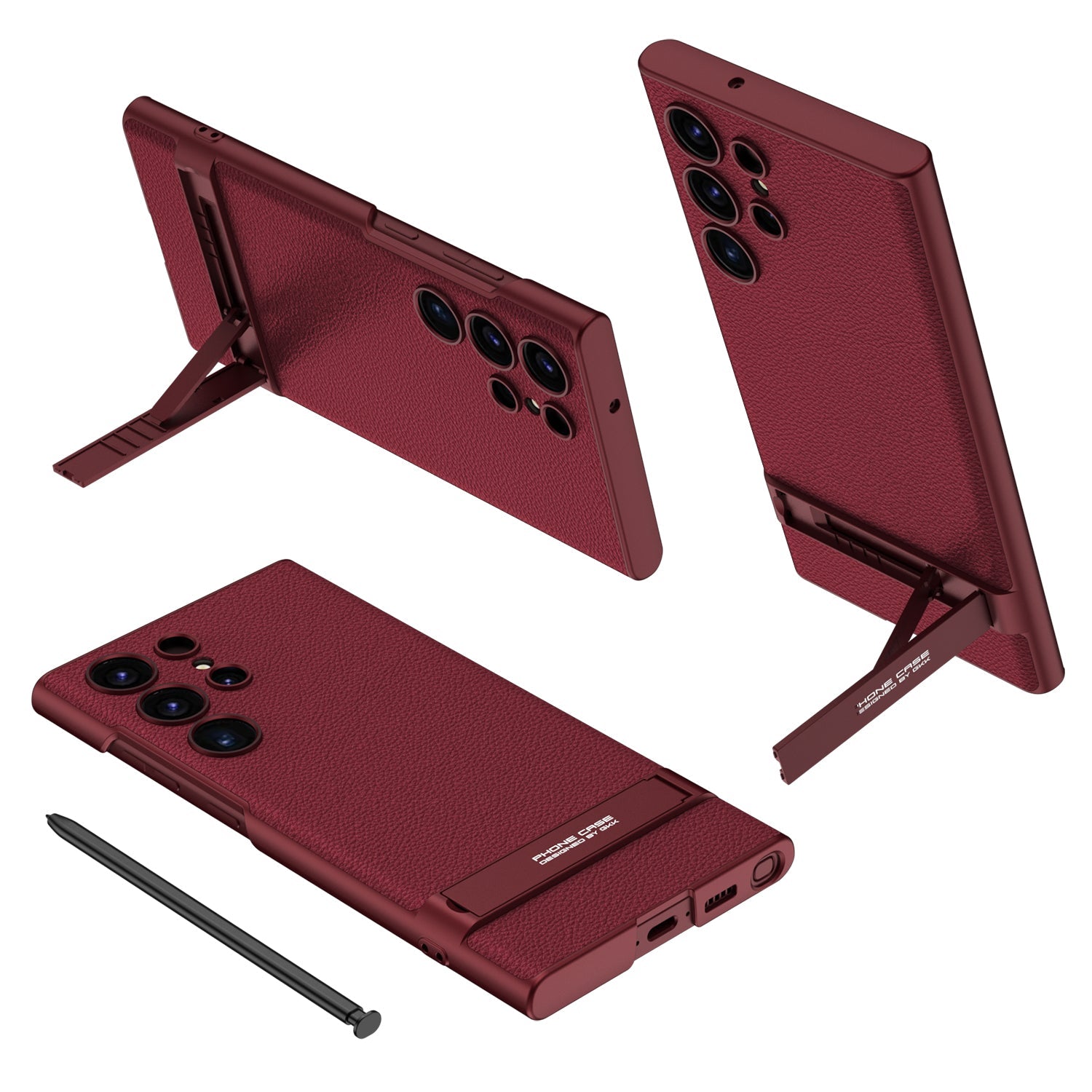Invisible Bracket Leather Phone Case For Samsung Galaxy S24 S23 S22 Ultra Plus