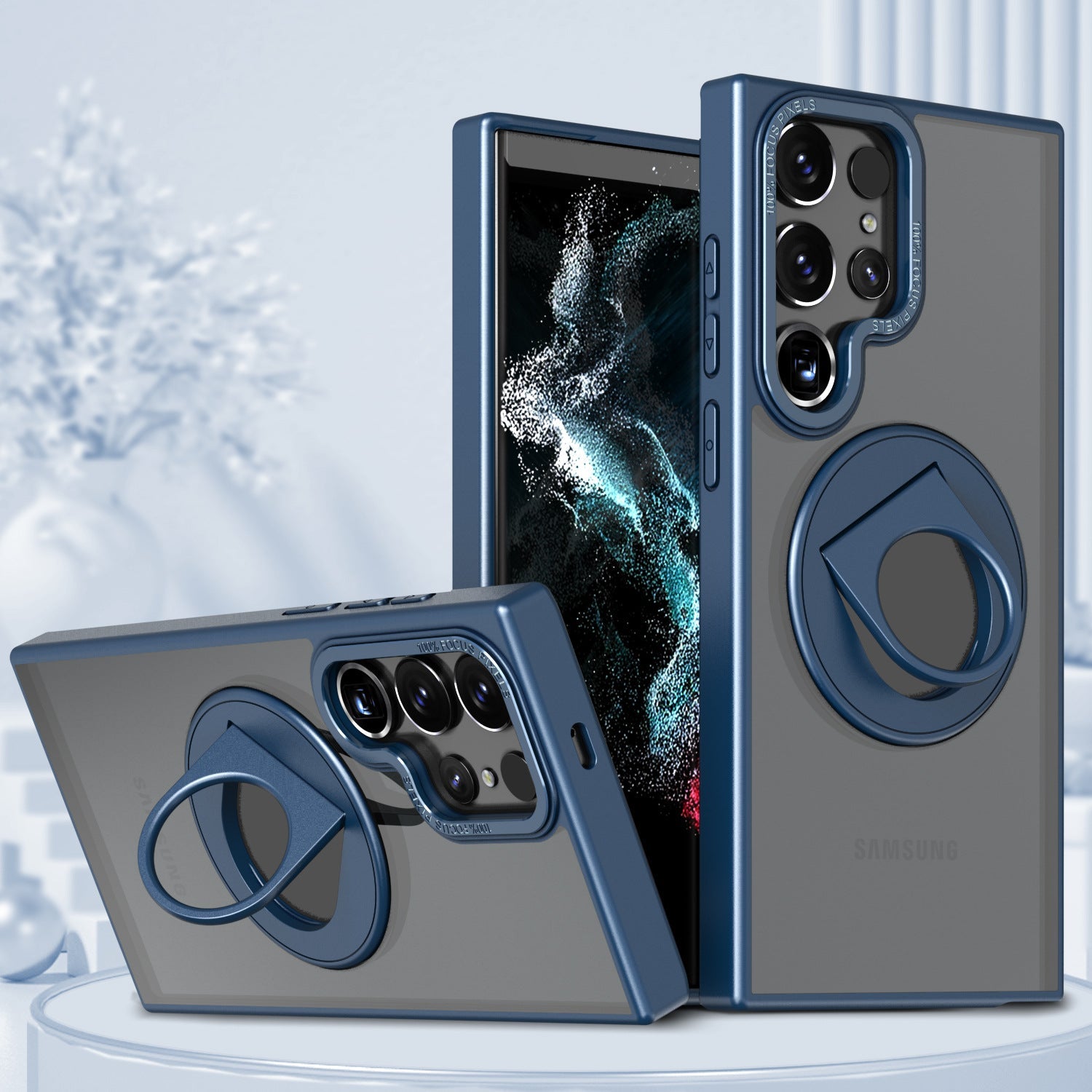 Magnetic Suction Bracket Electroplated Matte Protective Phone Case For Samsung Galaxy S23 S22 Ultra Plus