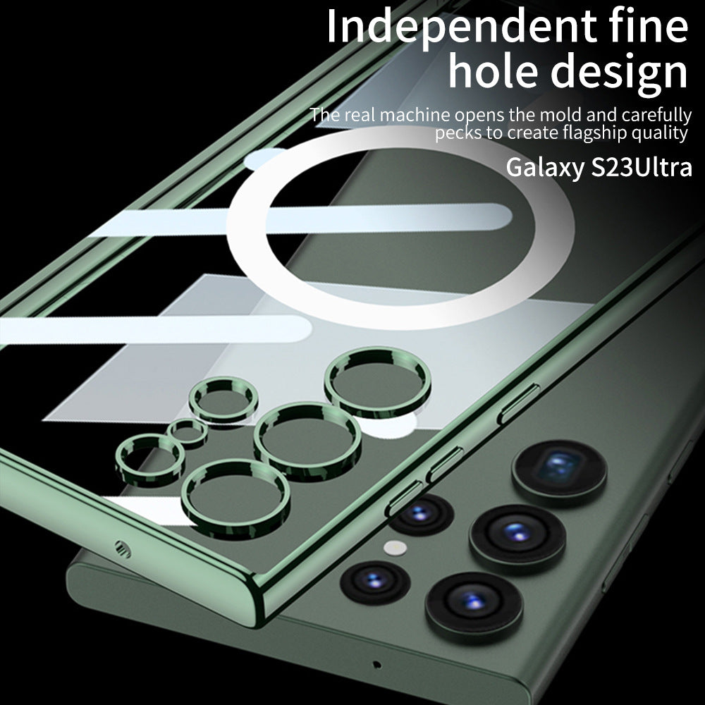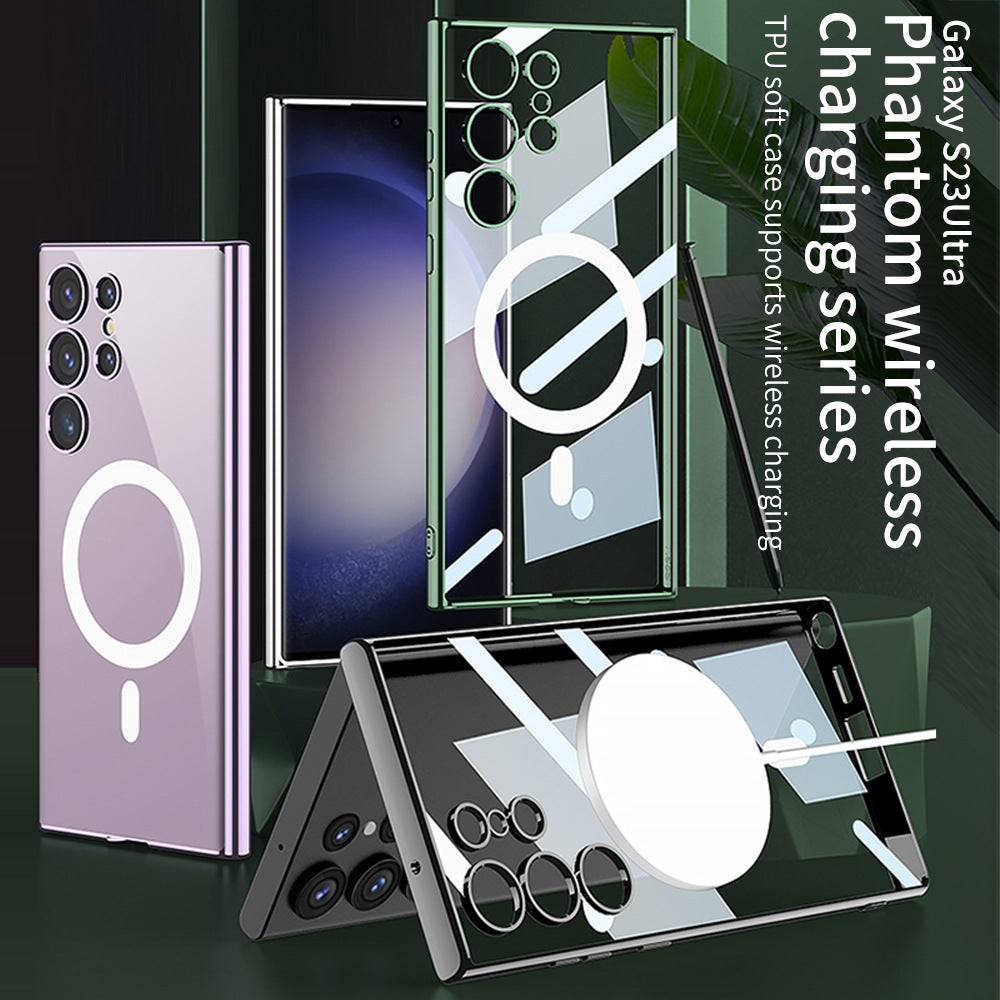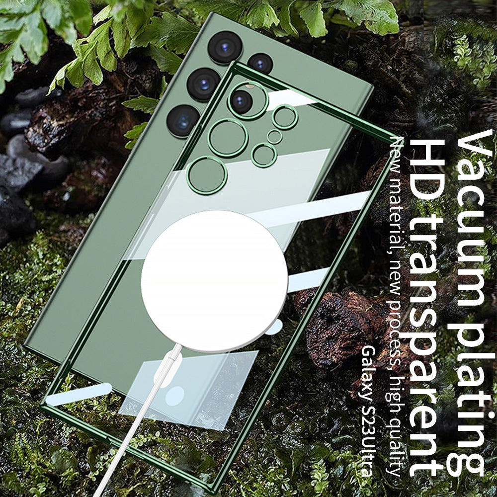 Electroplated Clear Phone Case With Magnetic MagSafe Charging Coil For Samsung Galaxy S23 Ultra Plus