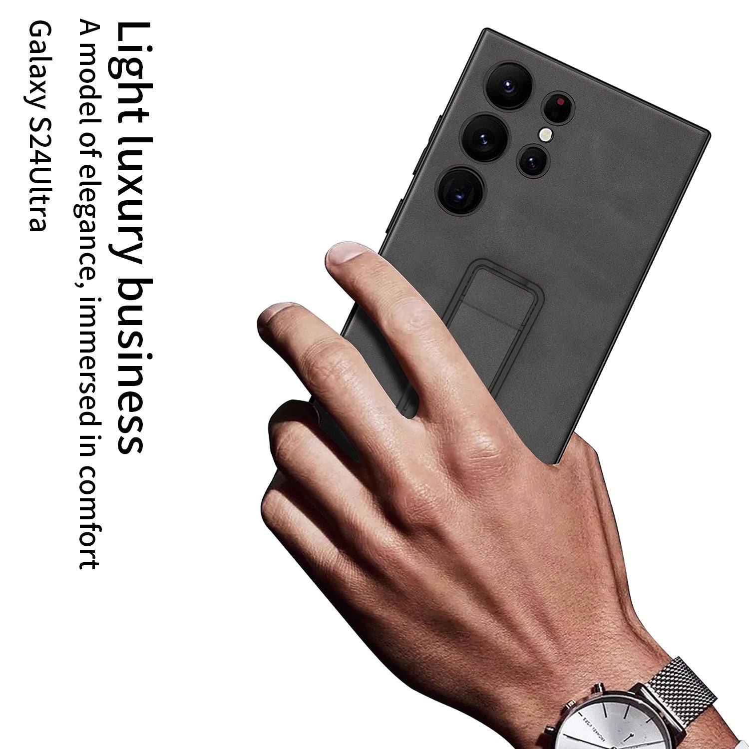Frosted Leather Protective Phone Case With Invisible Holder For Samsung Galaxy S24 S23 Ultra Plus
