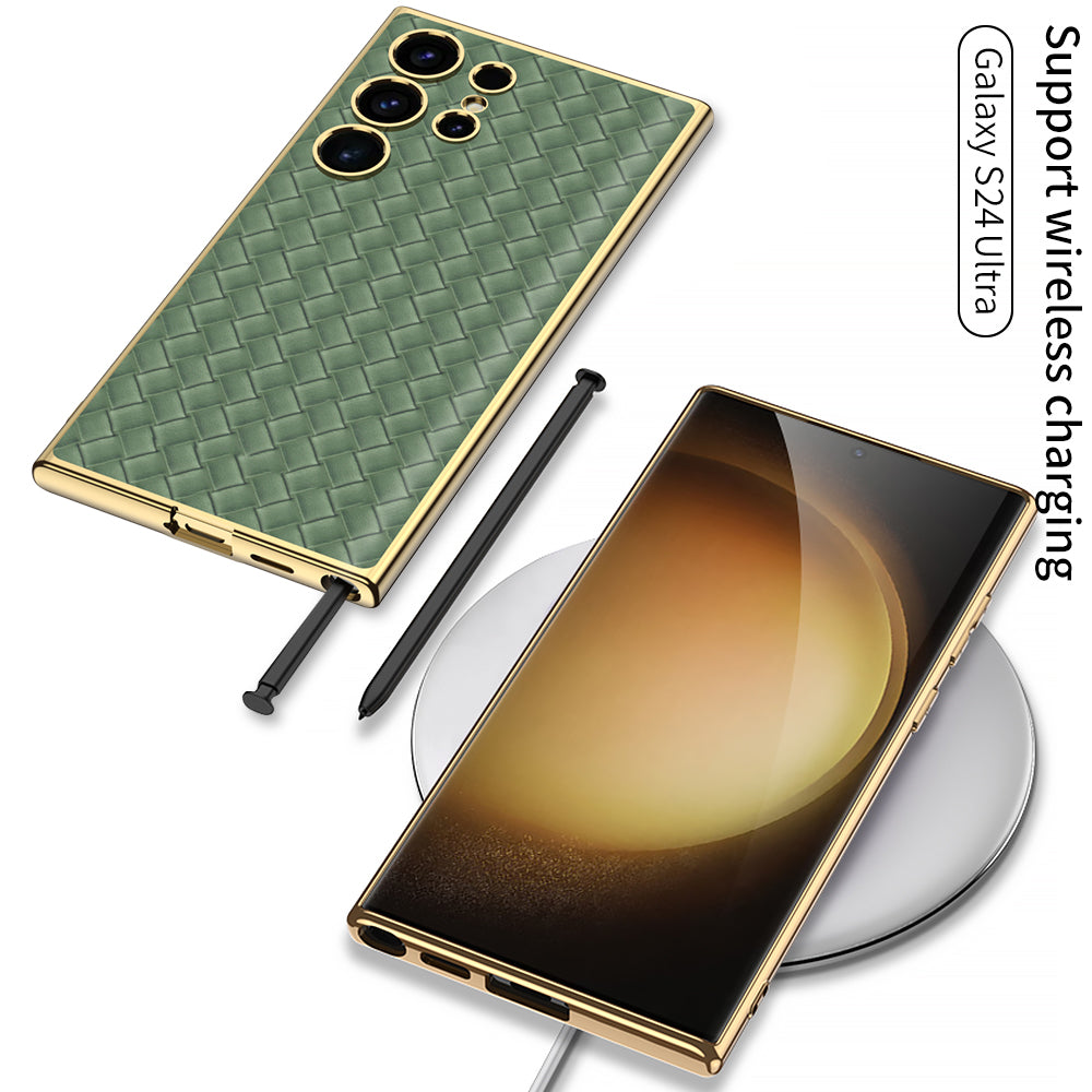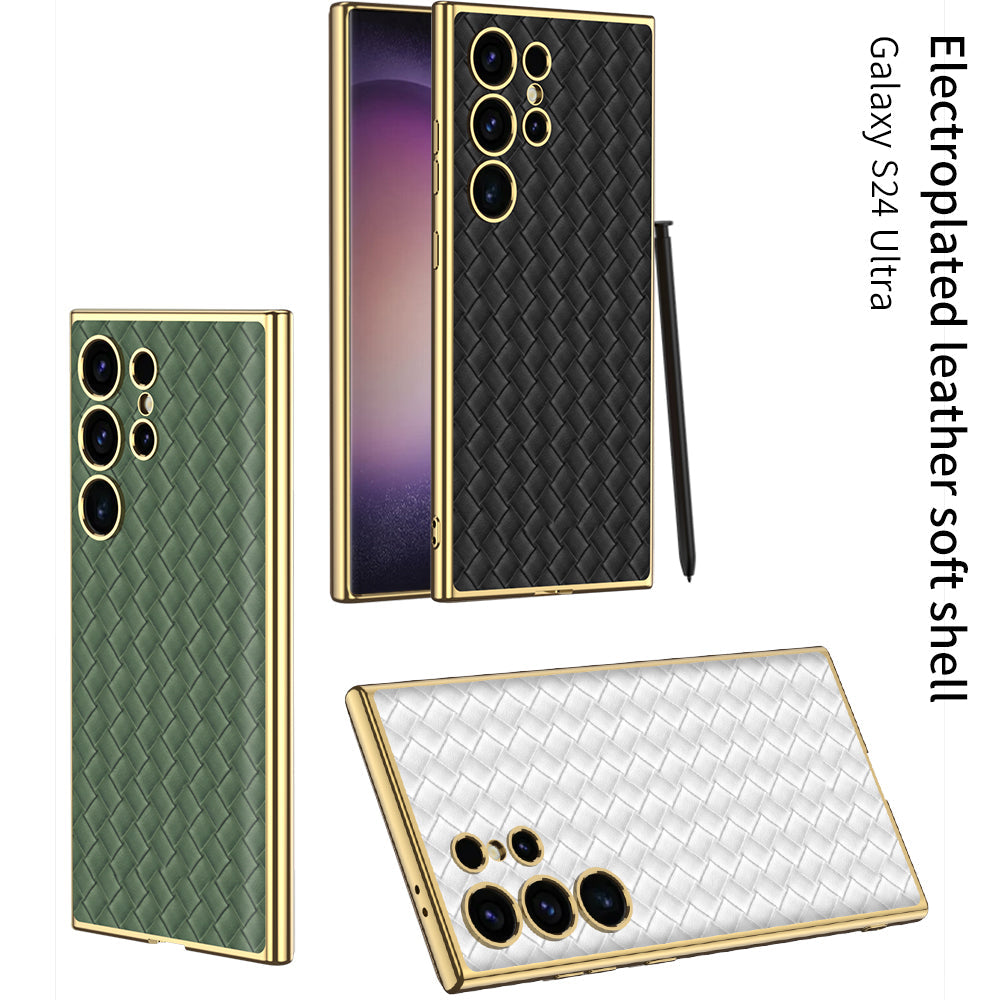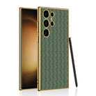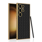 Woven Texture Electroplated Leather Phone Case For Samsung S24 S23 Ultra Plus
