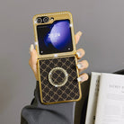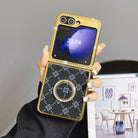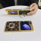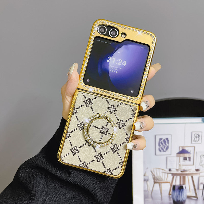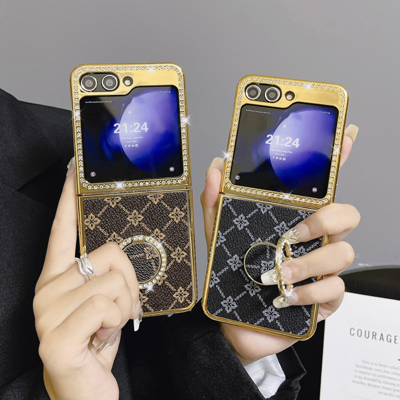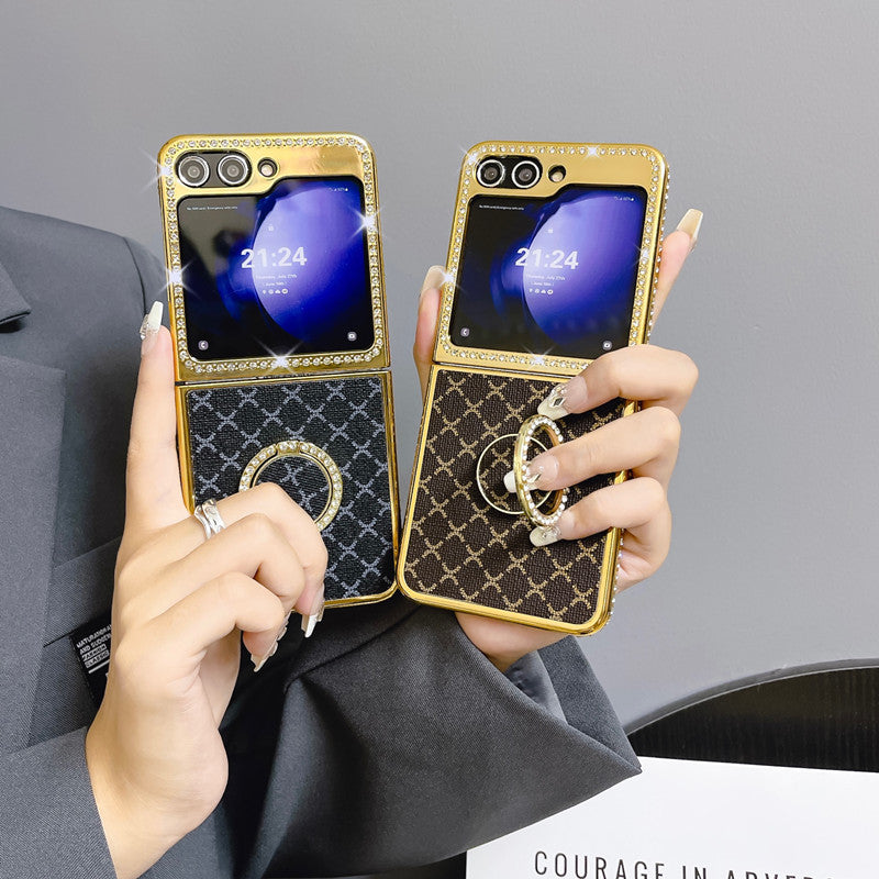 Luxury Gold Electroplated Leather Protective Phone Case With Ring Holder For Samsung Galaxy Z Flip5 Flip4 Flip3