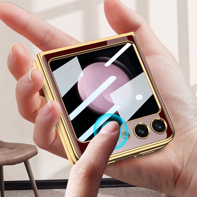 Electroplating Elk Shockproof Phone Case With Glass Screen Film For Galaxy Z Flip 6/5/4/3