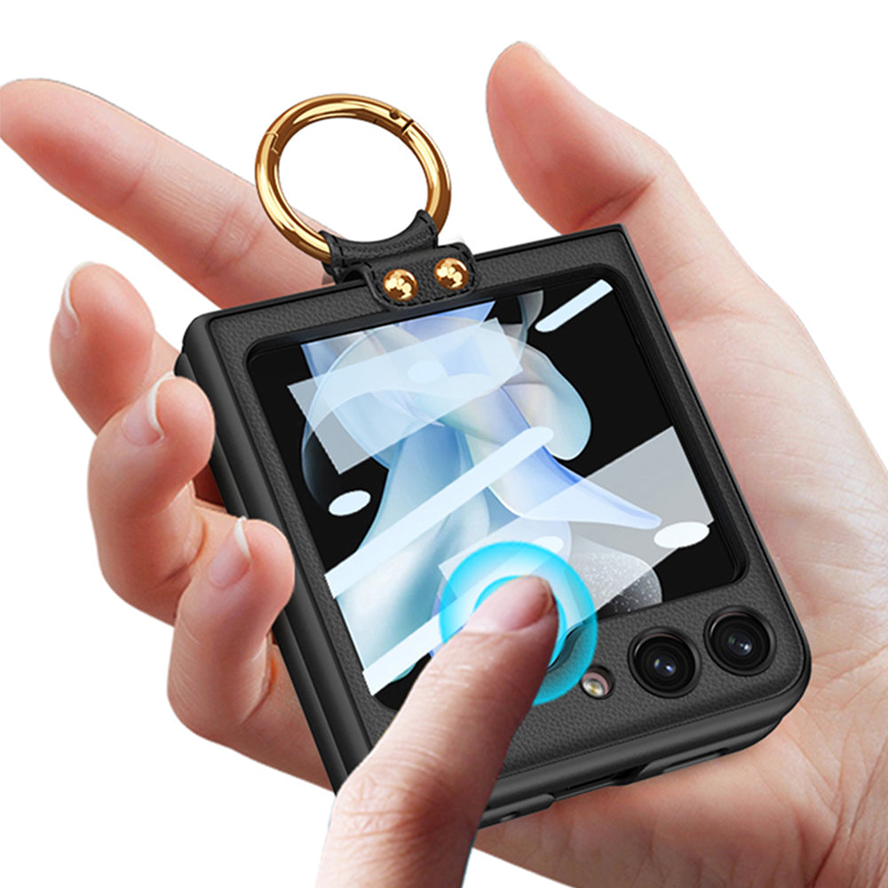 Original Leather Back Screen Tempered Glass Hard Frame Cover For Samsung Galaxy Z Flip5 Flip4 Flip3