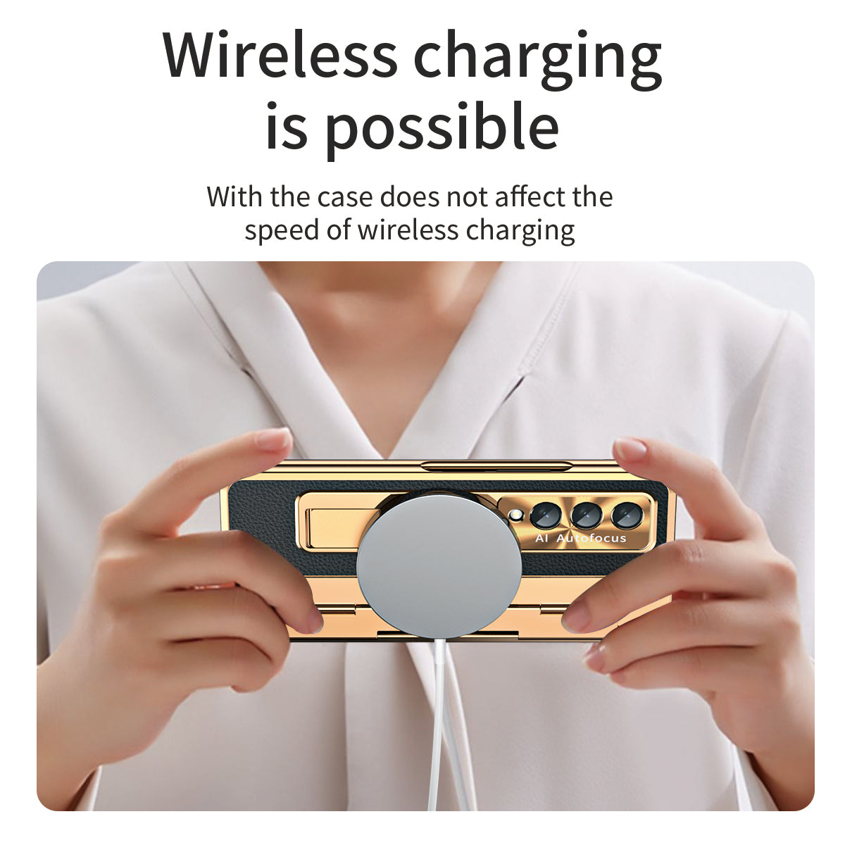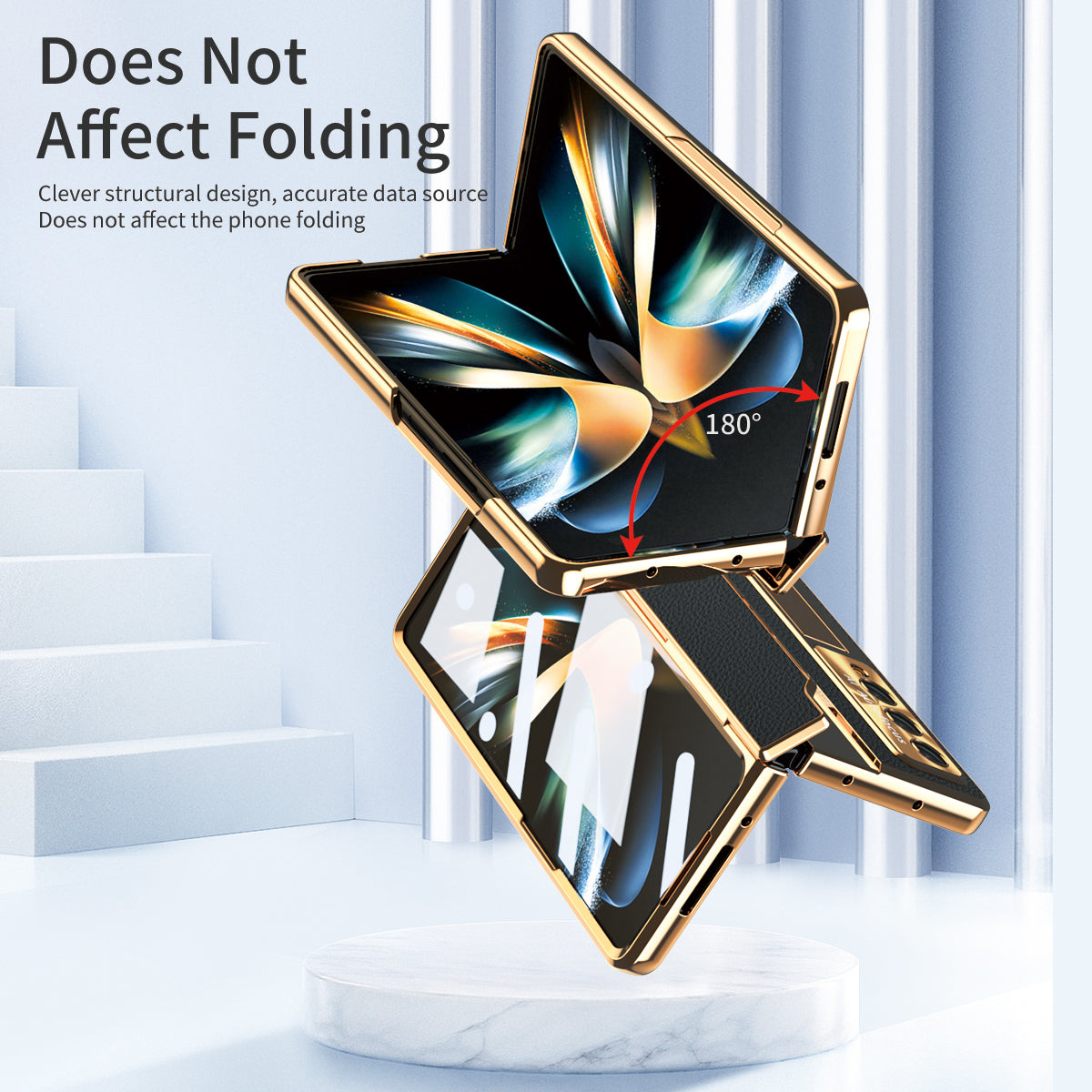Hinge Leather Shell Electroplated Case With Bracket For Samsung Galaxy Z Fold4 Fold3 5G