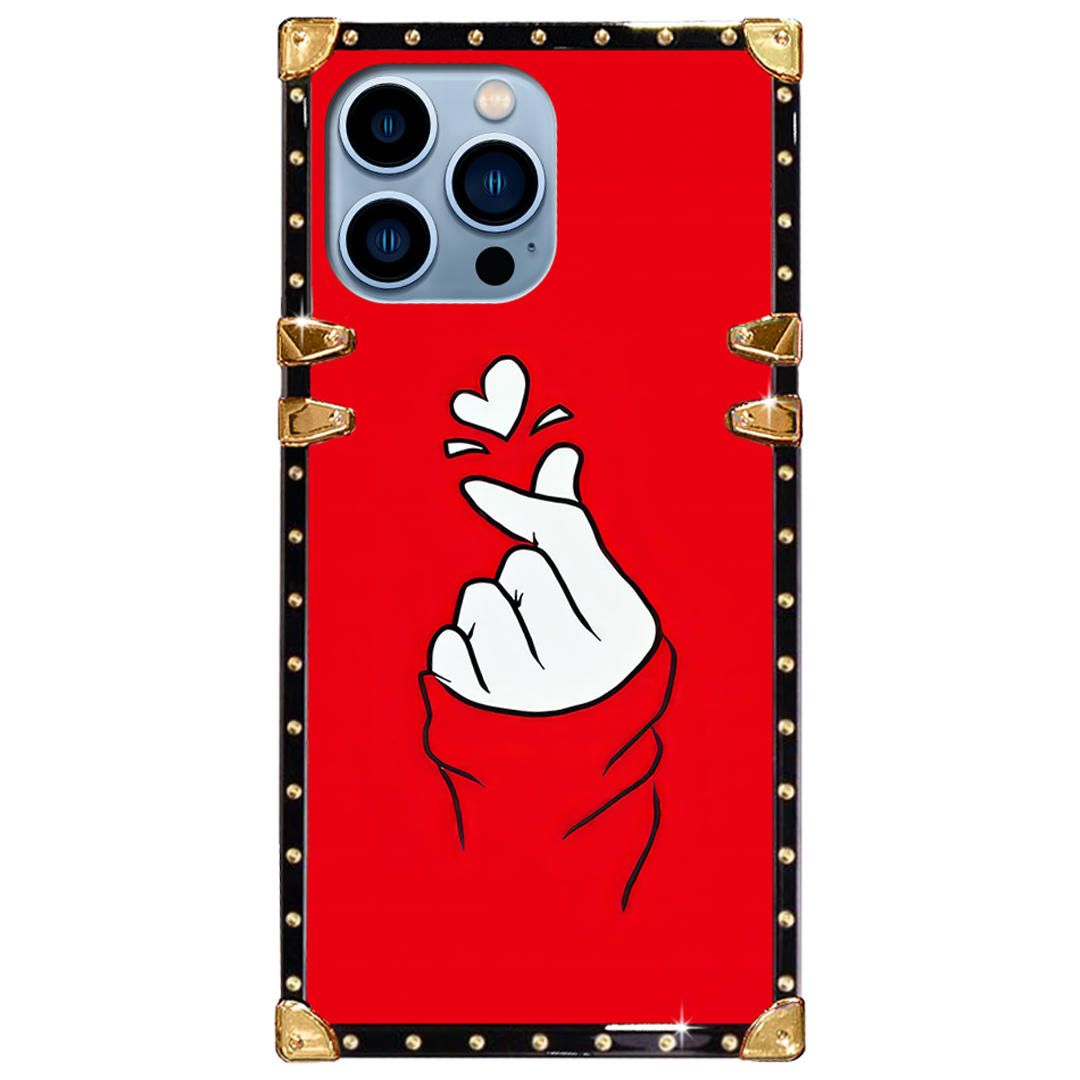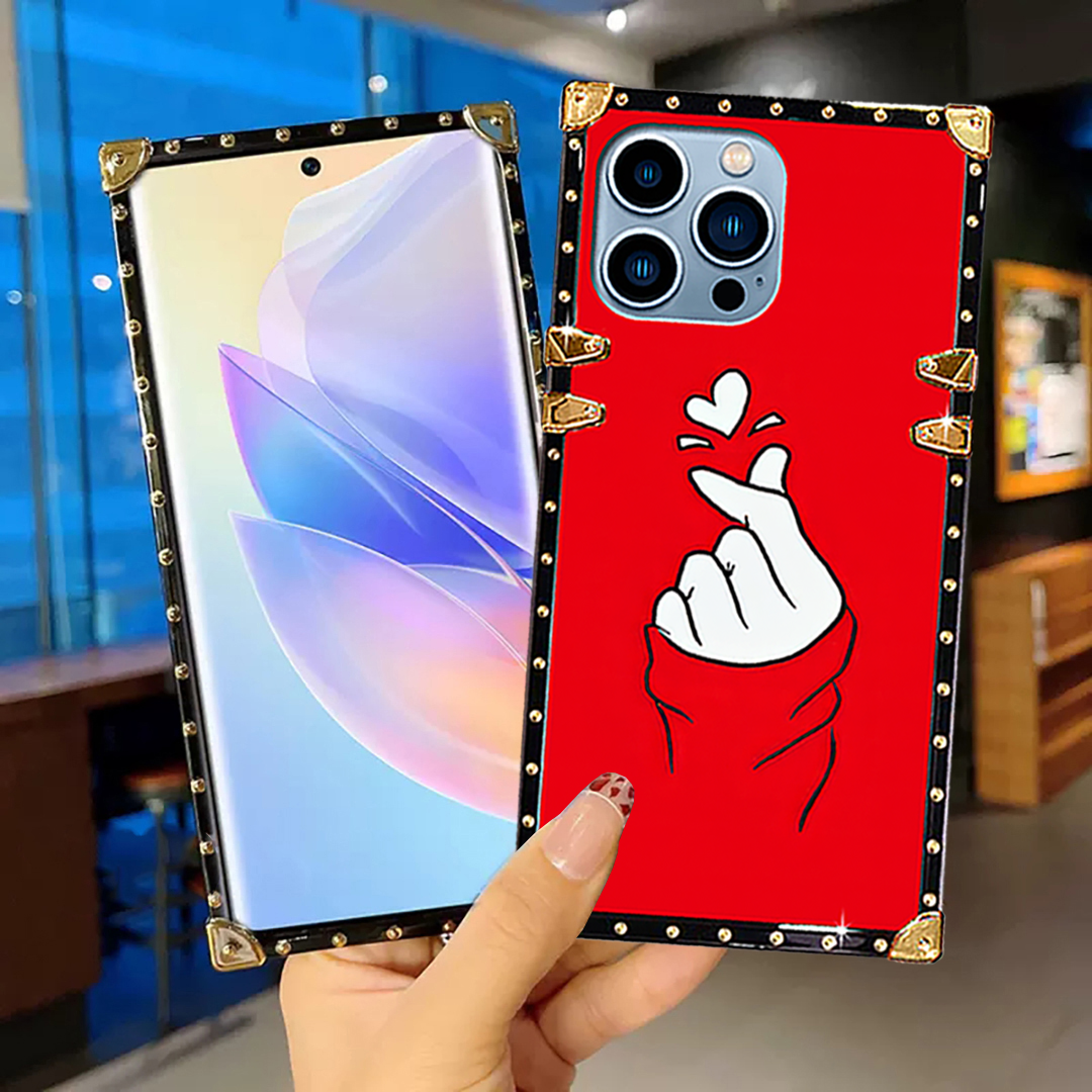 Luxury Brand Finger Hearts Gold Square Case For iPhone
