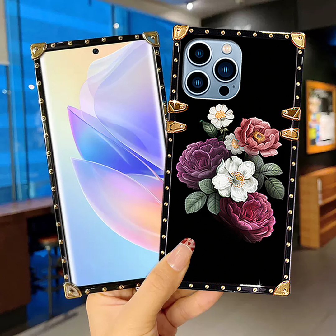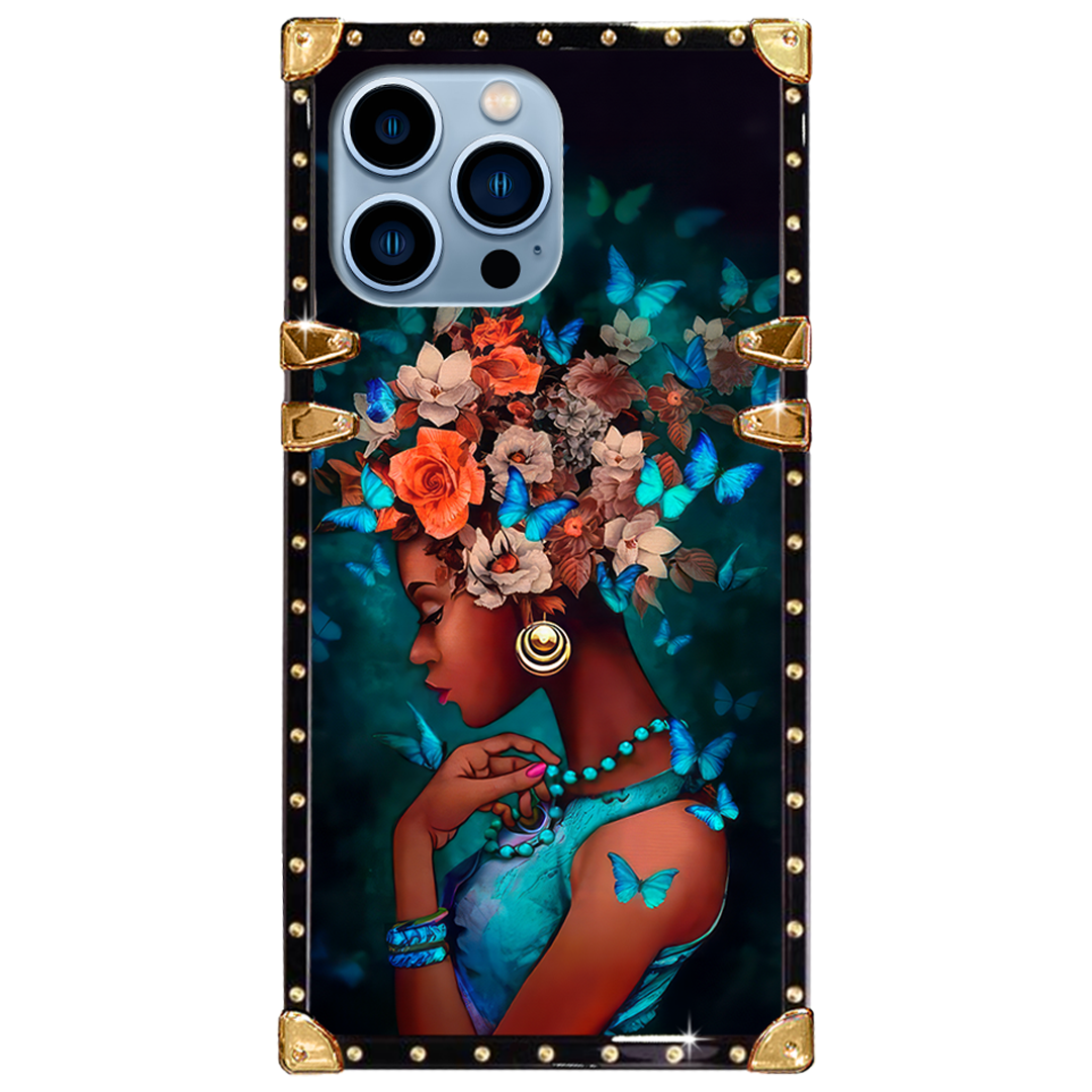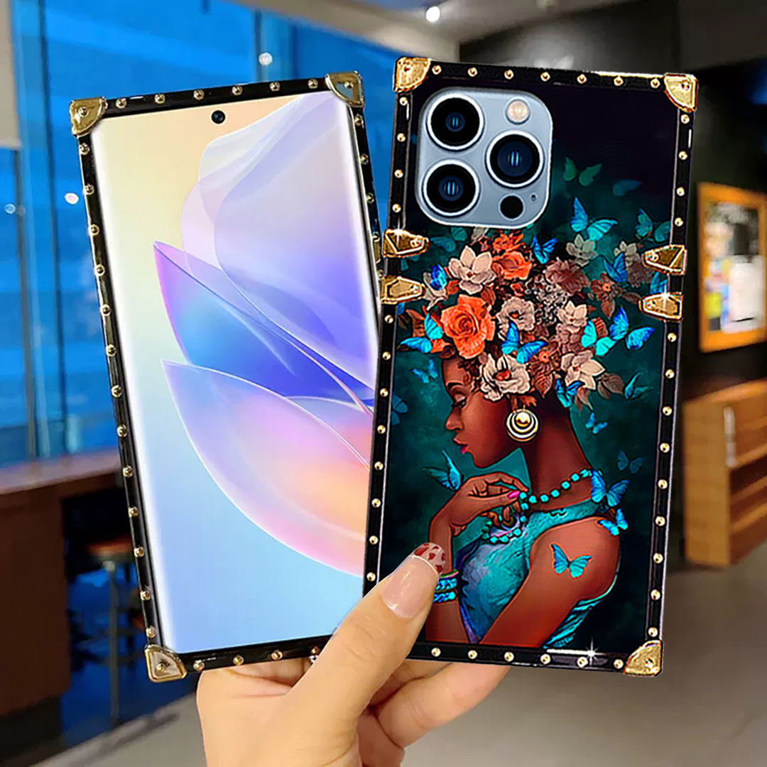 Luxury Brand Corolla Girl Gold Square Case For iPhone