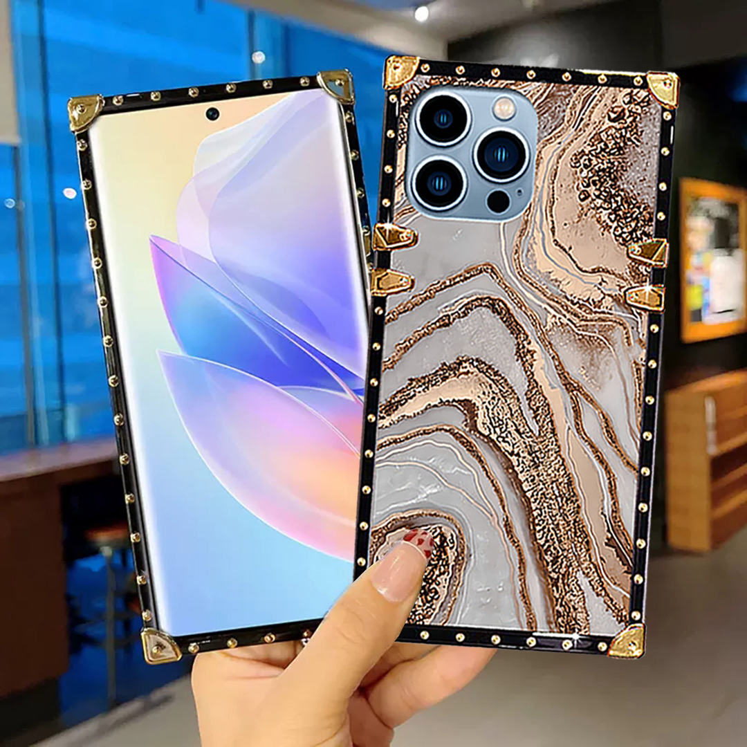 Luxury Brand Golden Rose Gold Square Case For iPhone