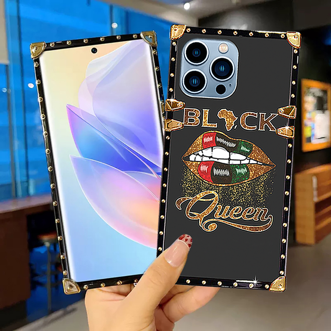 Luxury Brand Black Queen Gold Square Case For iPhone