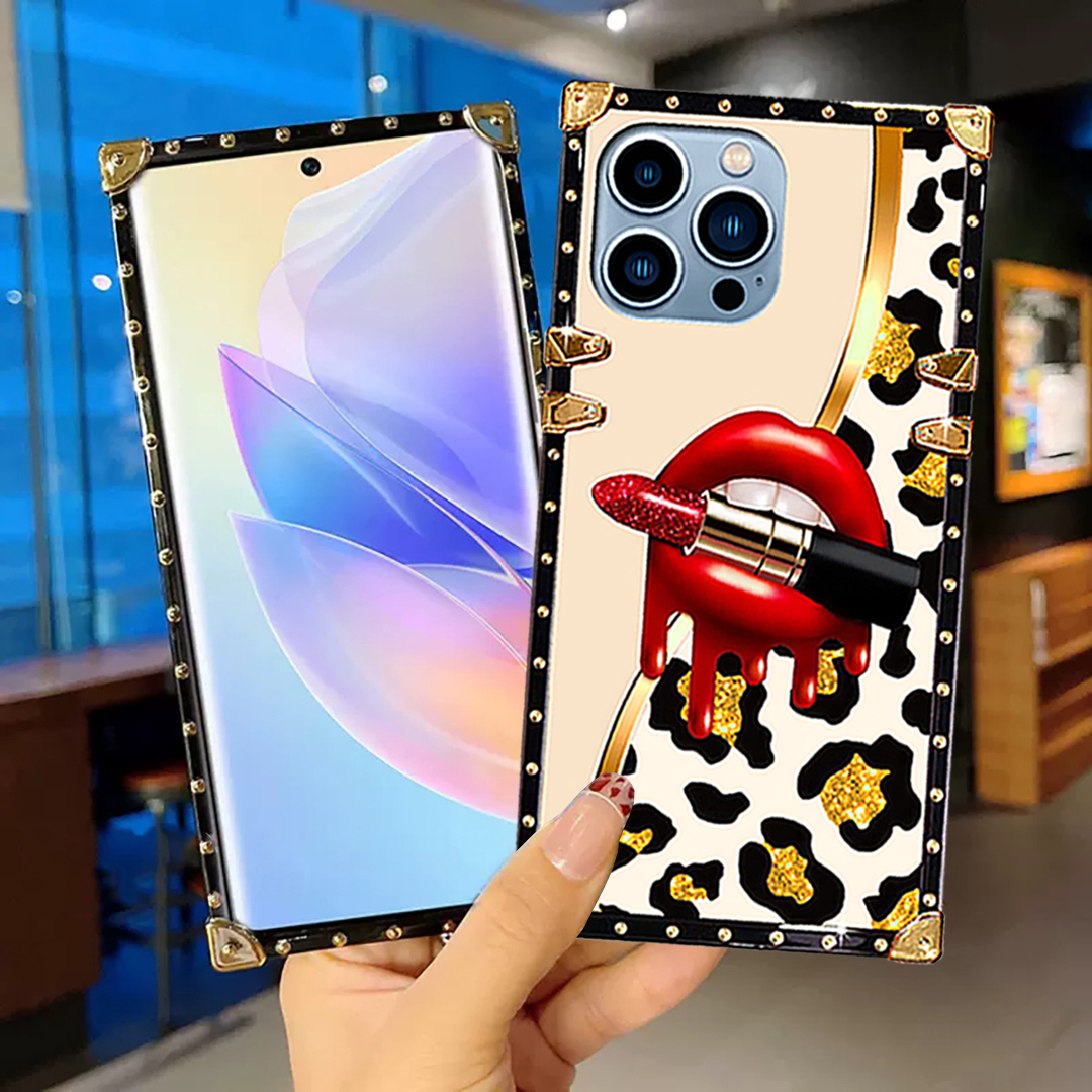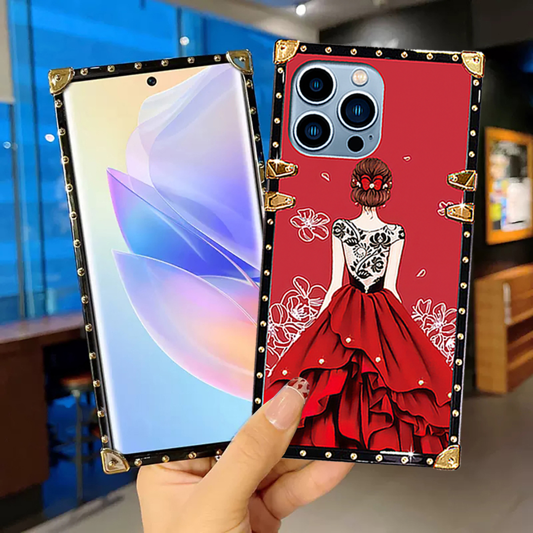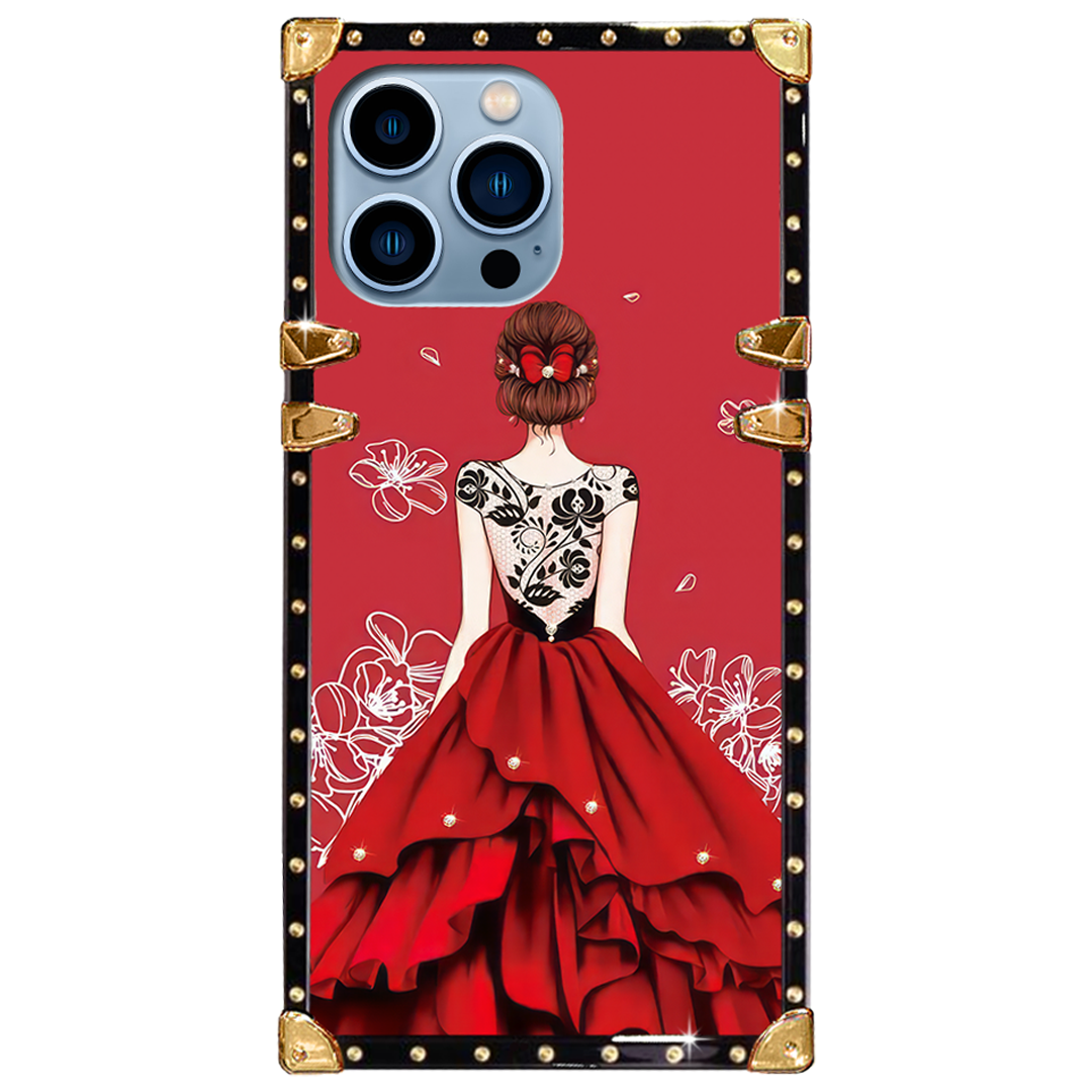 Luxury Brand Dress Girl Gold Square Case For iPhone