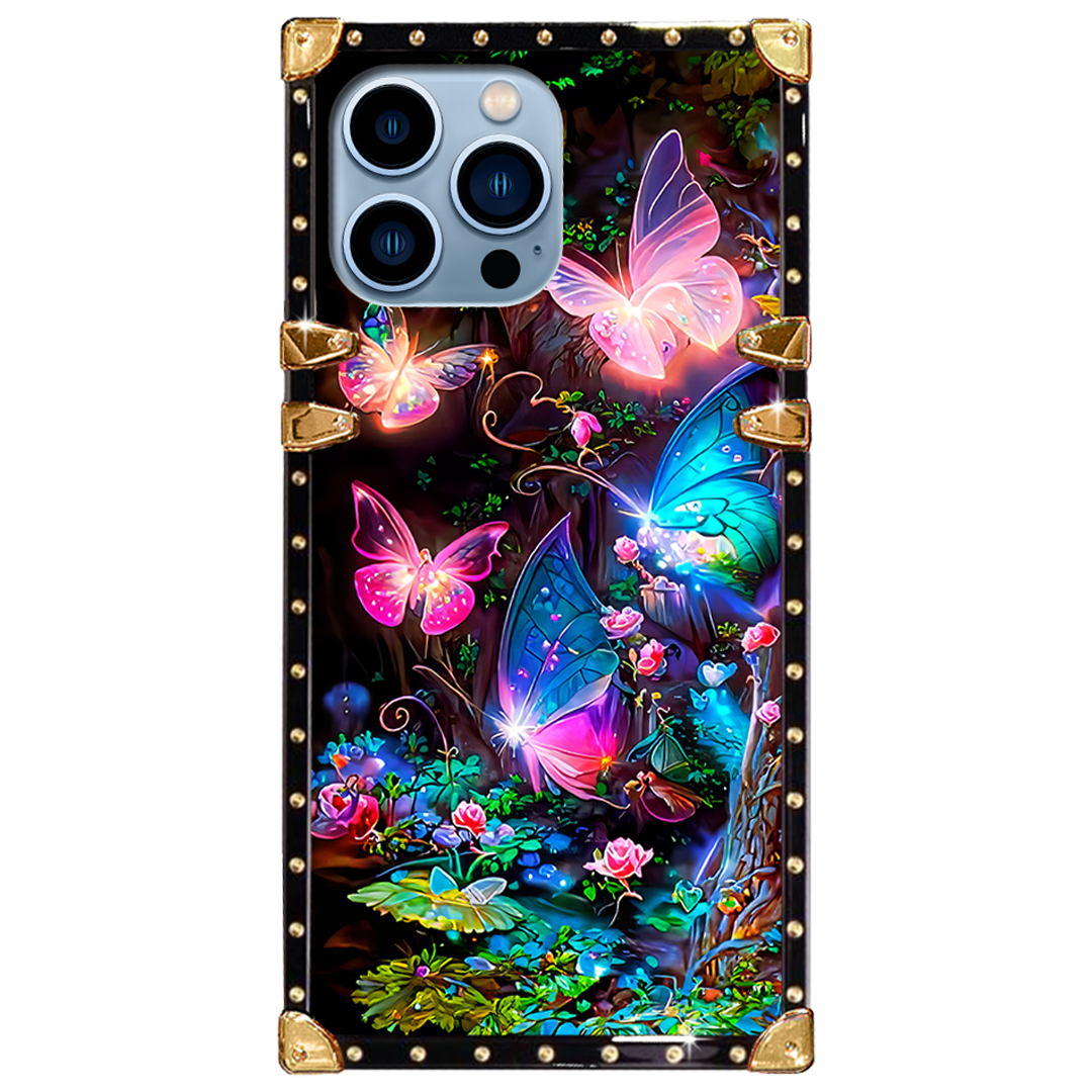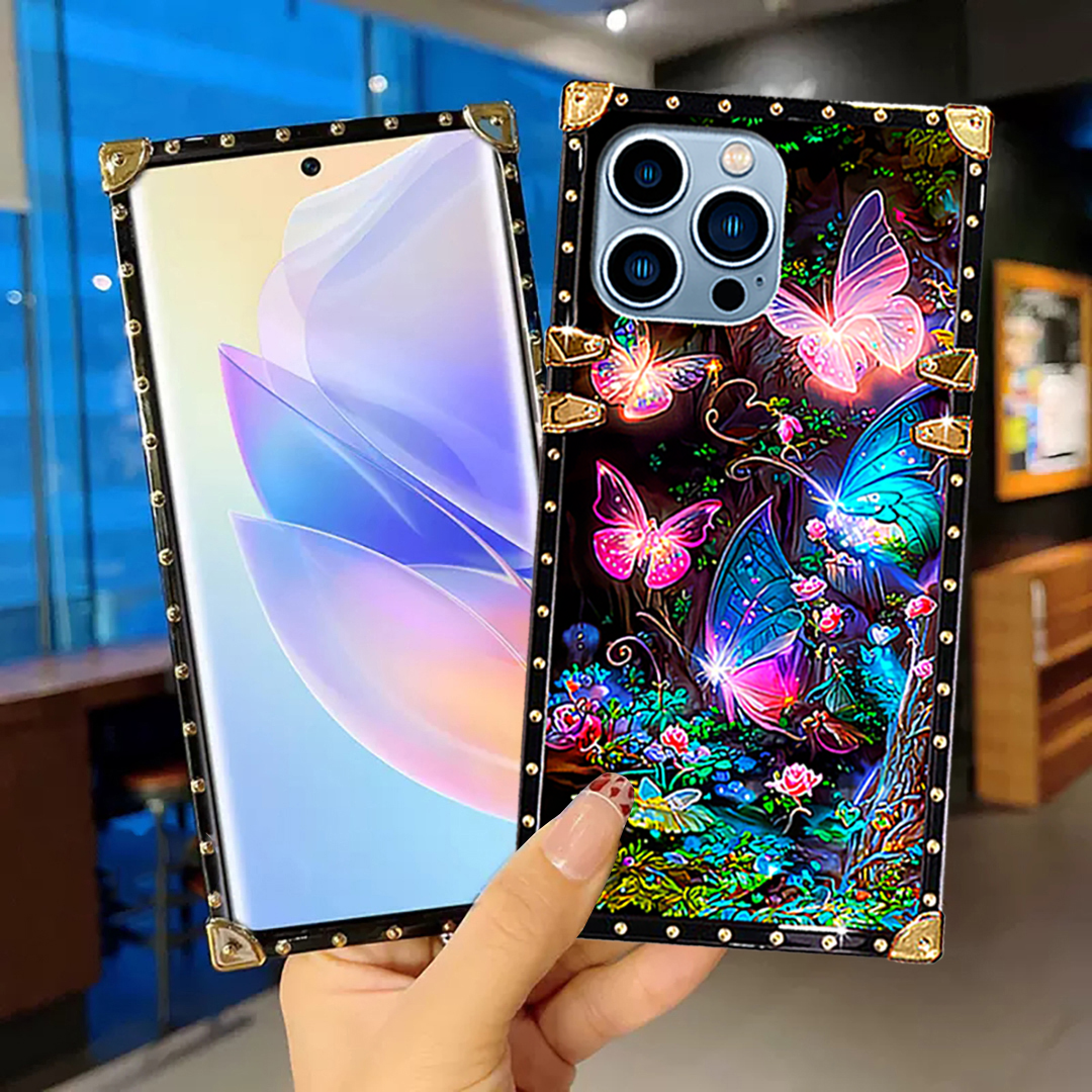 Luxury Brand Colorful Butterfly Gold Square Case For iPhone