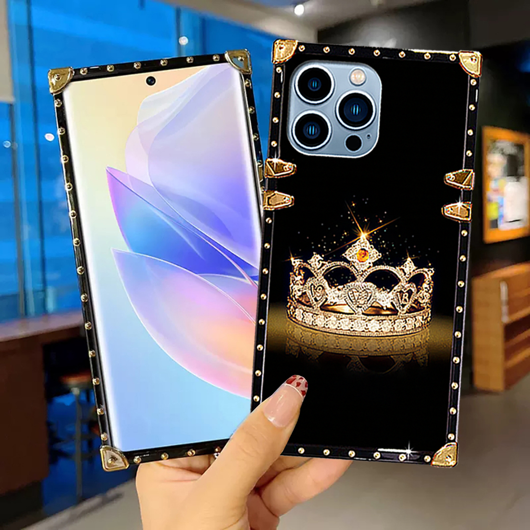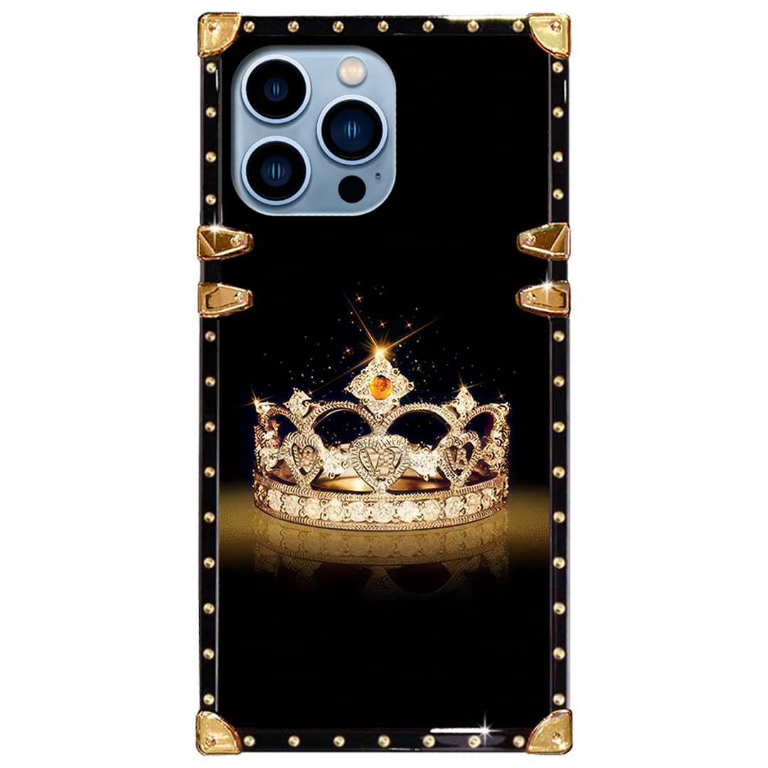 Luxury Brand Golden Crown Gold Square Case For iPhone