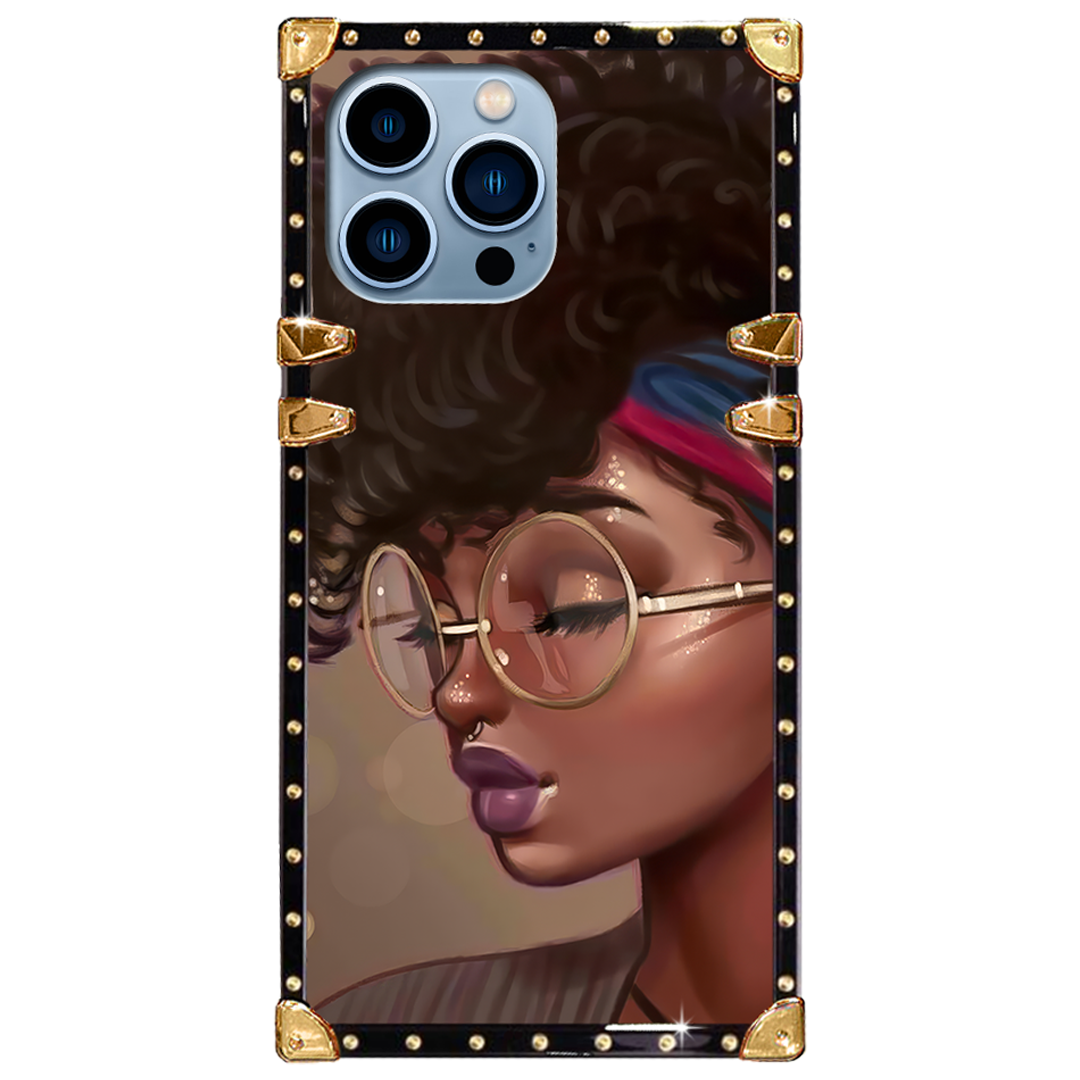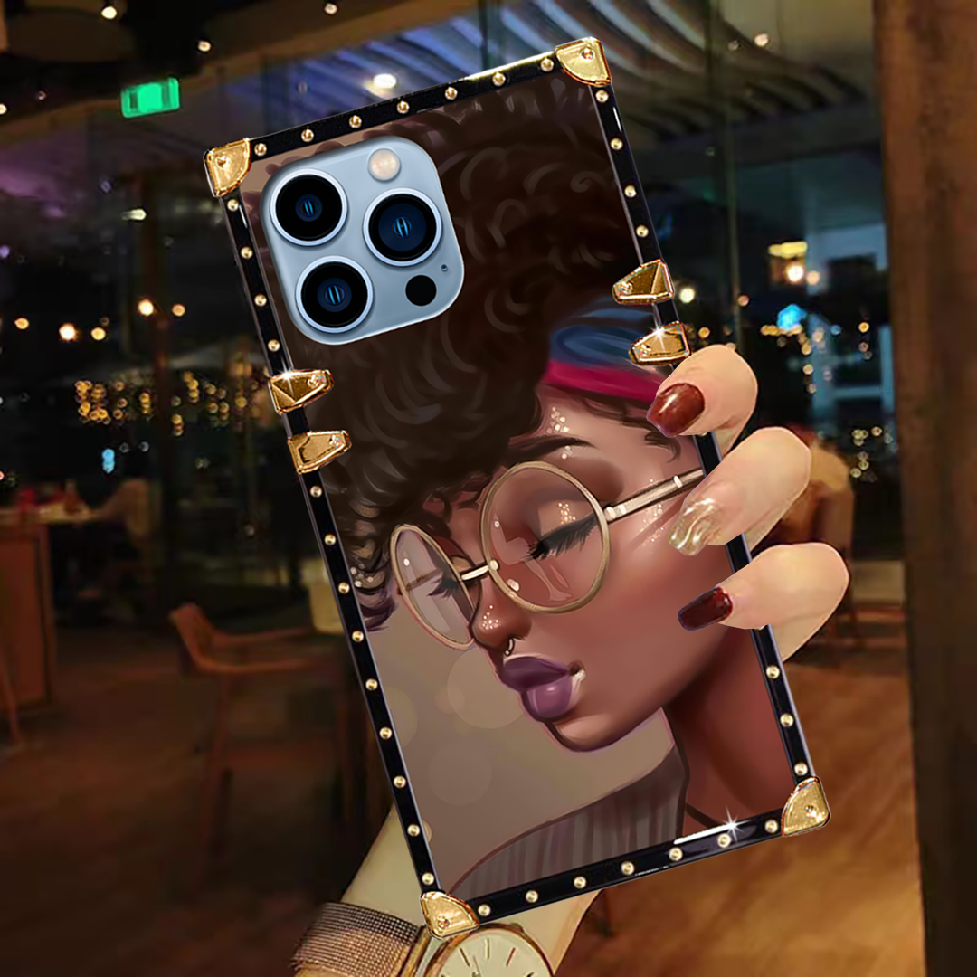 Luxury Brand Glasses Girl Gold Square Case For iPhone