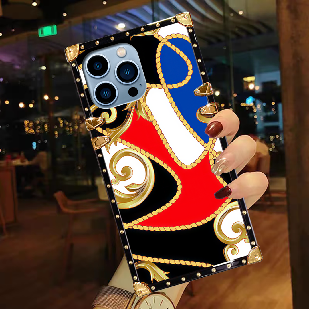 Luxury Brand Golden Baroque Gold Square Case For iPhone