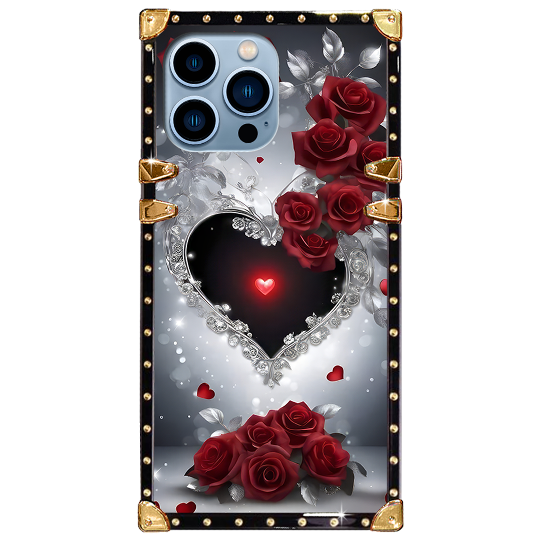 Luxury Brand Rose Heart Gold Square Case For iPhone