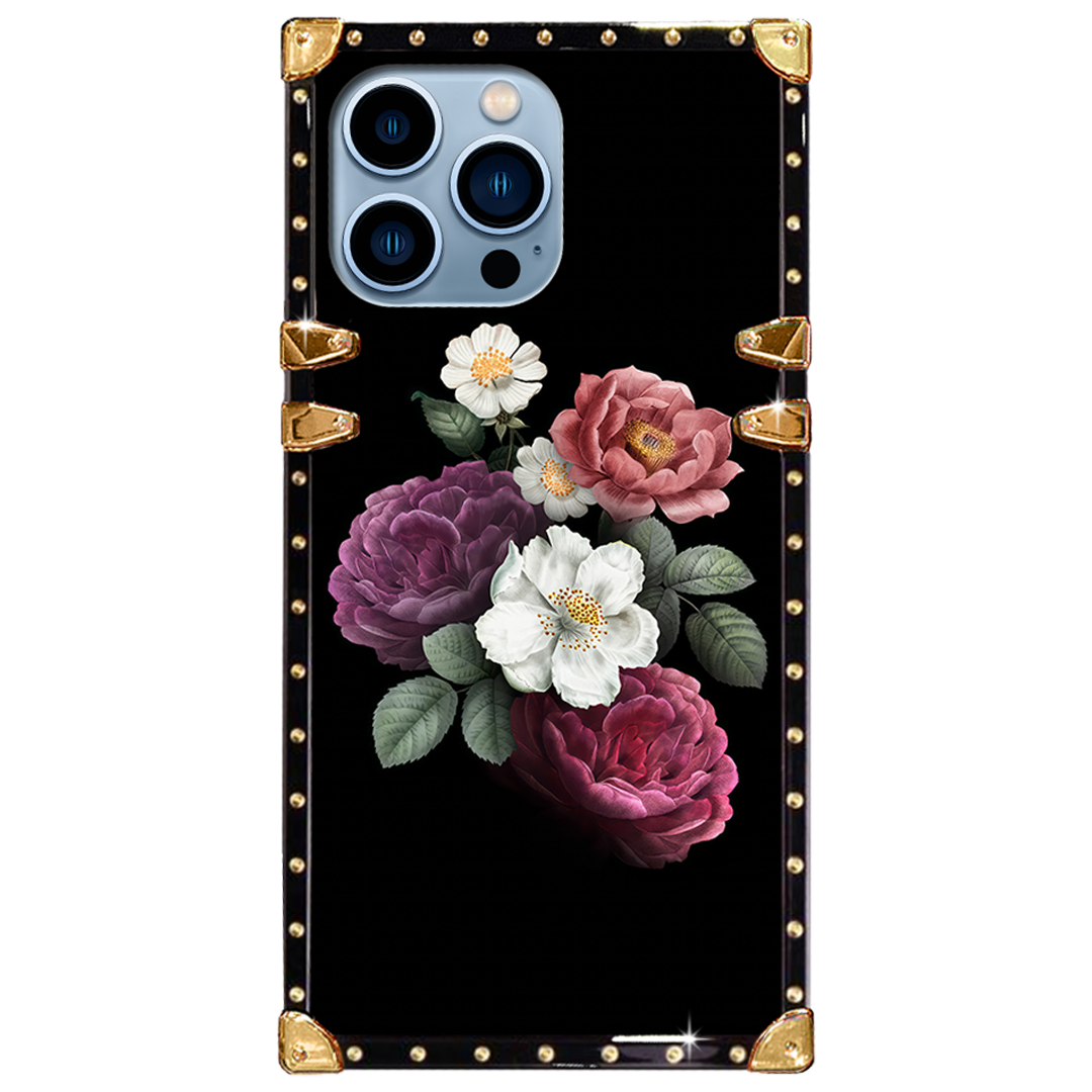 Luxury Brand Sunset Rose Garden Gold Square Case For iPhone