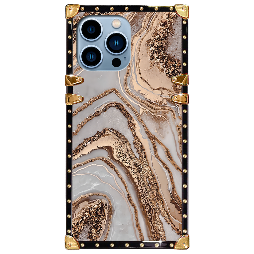 Luxury Brand Abstract Ladder Gold Square Case For iPhone