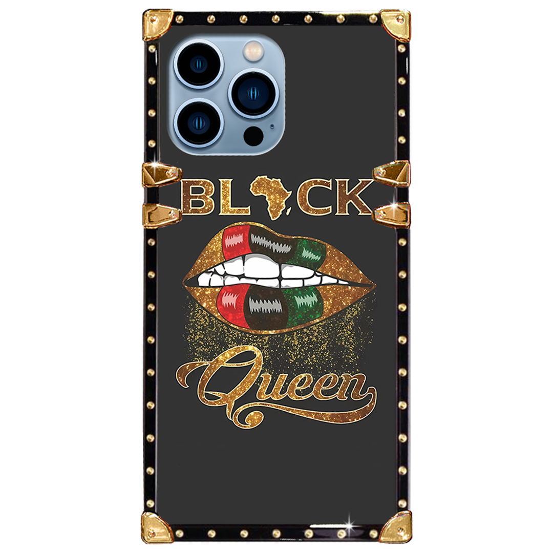 Luxury Brand Black Queen Gold Square Case For iPhone