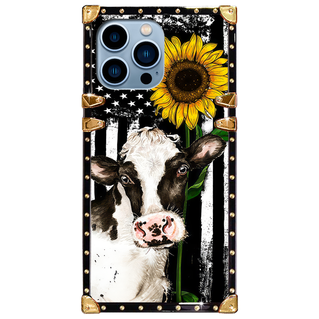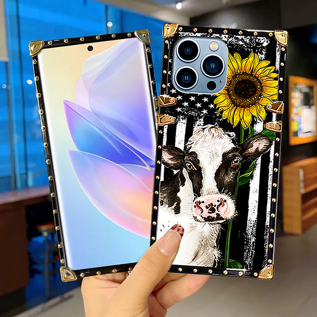 Luxury Brand Cow Sunflower Gold Square Case For iPhone