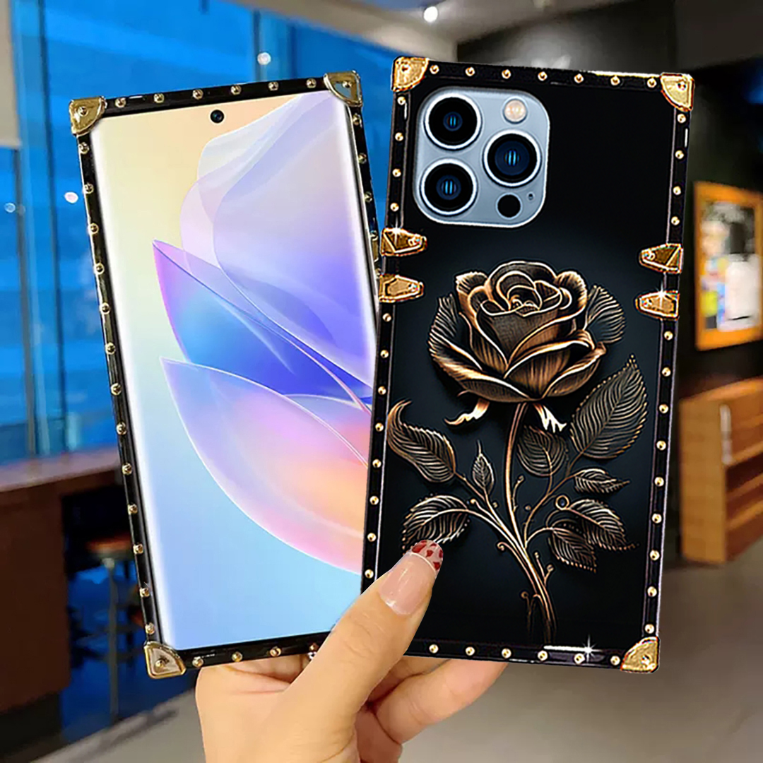 Luxury Brand Golden Rose Gold Square Case For iPhone