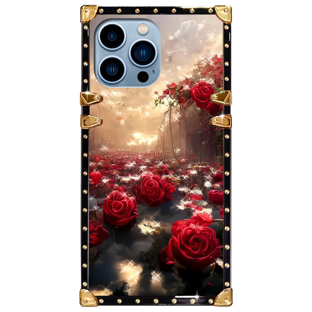 Luxury Brand Sunset Rose Garden Gold Square Case For iPhone