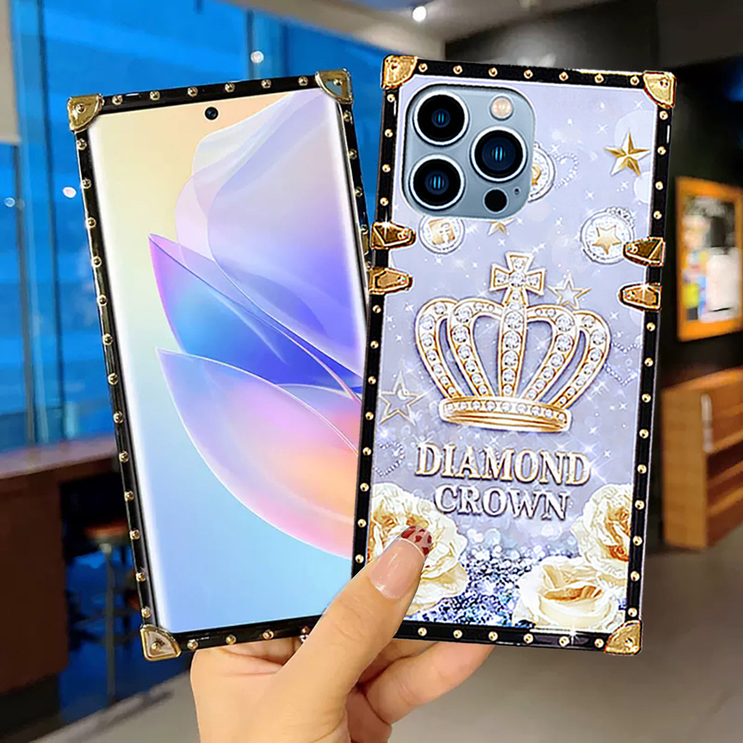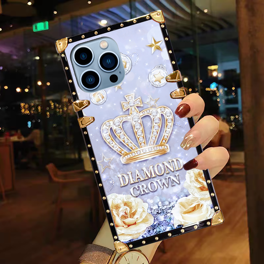 Luxury Brand Diamond Crown Gold Square Case For iPhone
