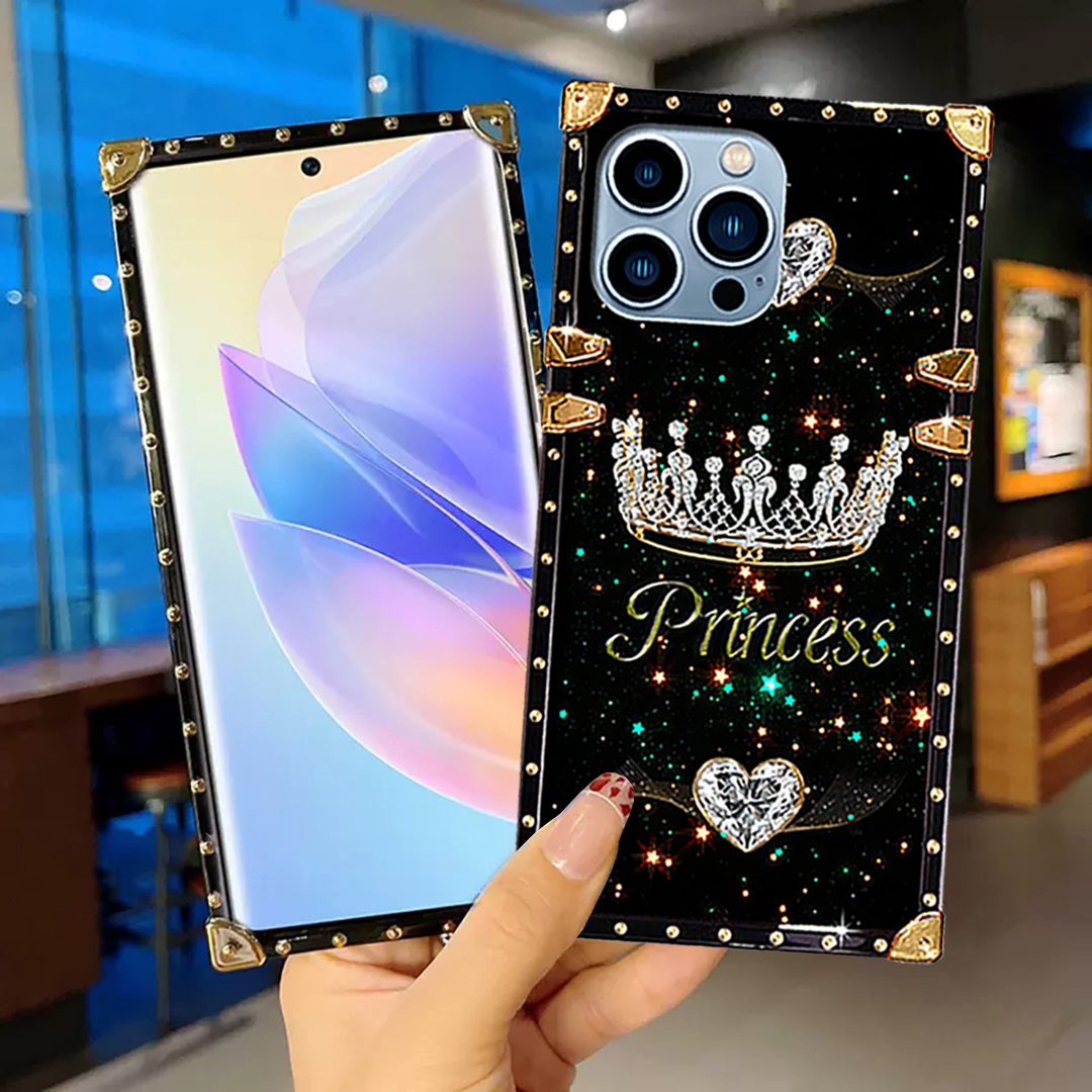 Luxury Brand Princess Crown Gold Square Case For iPhone