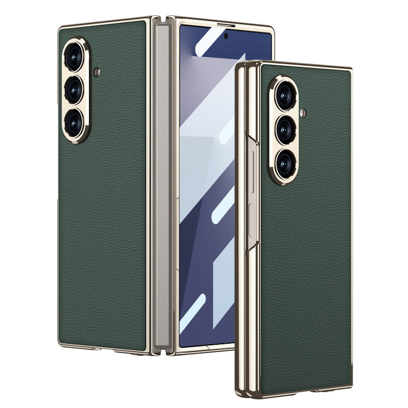 Leather Lens Slide Protector Shockproof Phone Case With Screen Protector For Galaxy Z Fold 6