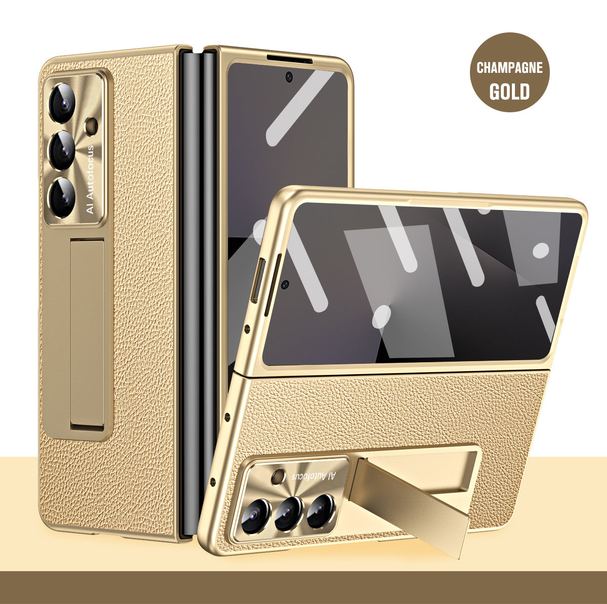 Business Electroplating Leather Phone Case With Screen Film For Galaxy Z Fold 7/6/5/4/3